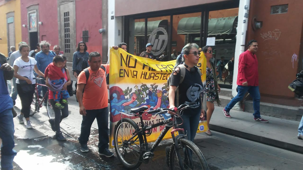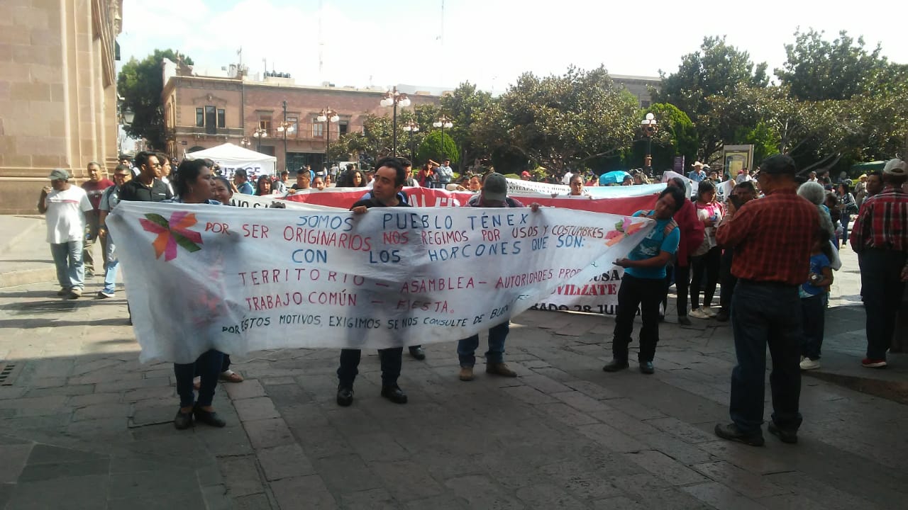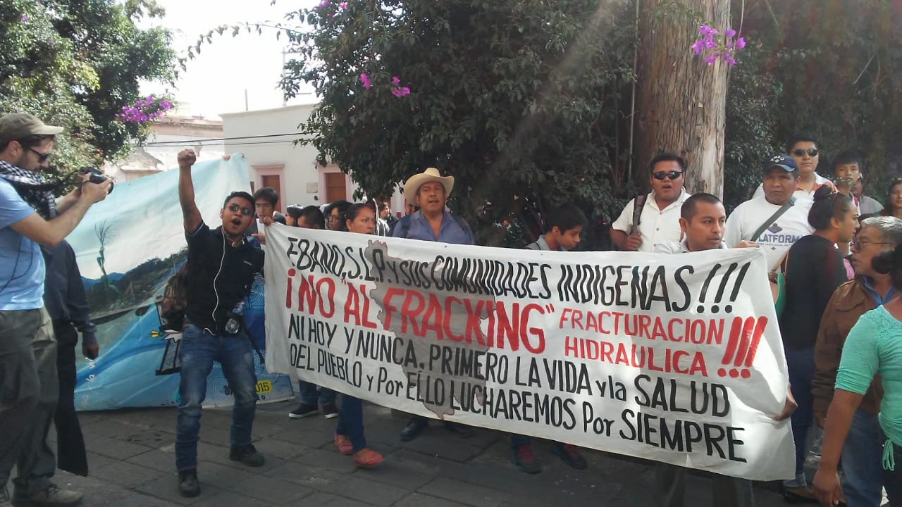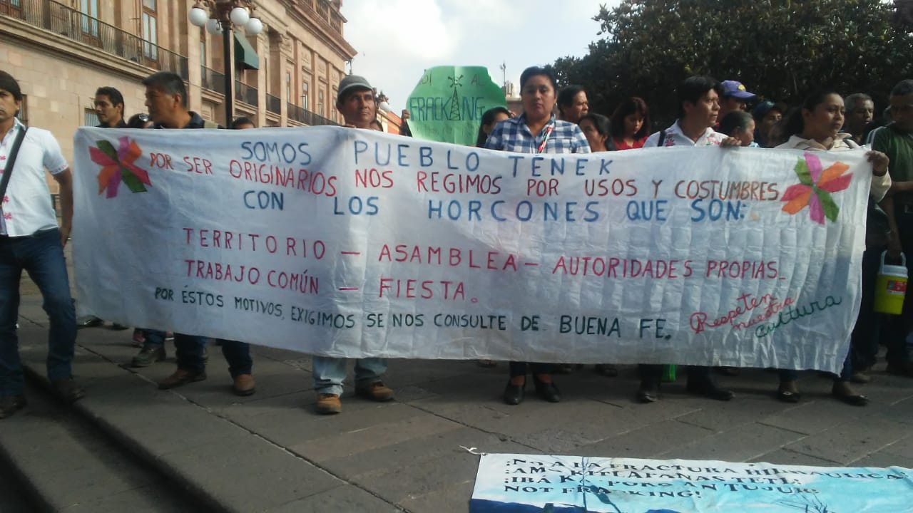 Habitantes de Xilitla, Tampomolón Corona, Tanlajás,Tancanhuitz, Ébano, Ciudad Valles y de algunas comunidades de San Luis Potosí, en el marco del día Internacional de los Pueblos Indígenas, se manifestaron en contra de la fractura hidráulica o fracking en la Huasteca Potosina.