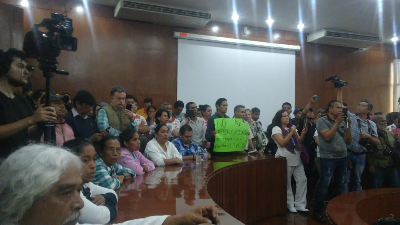 Cerca de las nueve de la mañana, se dieron cita frente al recinto legislativo “Jardín Hidalgo”, con pancartas en rechazo a esa técnica de perforación. Buscaban ser escuchados y atendidos por los legisladores, pues se pensaba que los diputados tendrían sesión.
