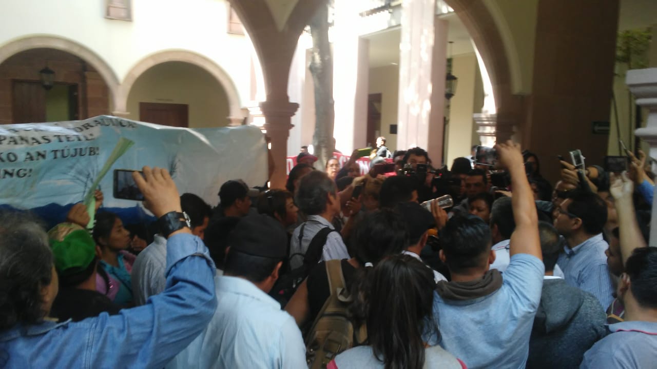 Cerca del medio día fueron recibidos por los diputados Héctor Mendizabal Pérez y Jesús Cardona Mireles integrates de la Comisión de Ecología y la diputada Guillermina Morquecho, integrante de la Comisión de Asuntos Indígenas.