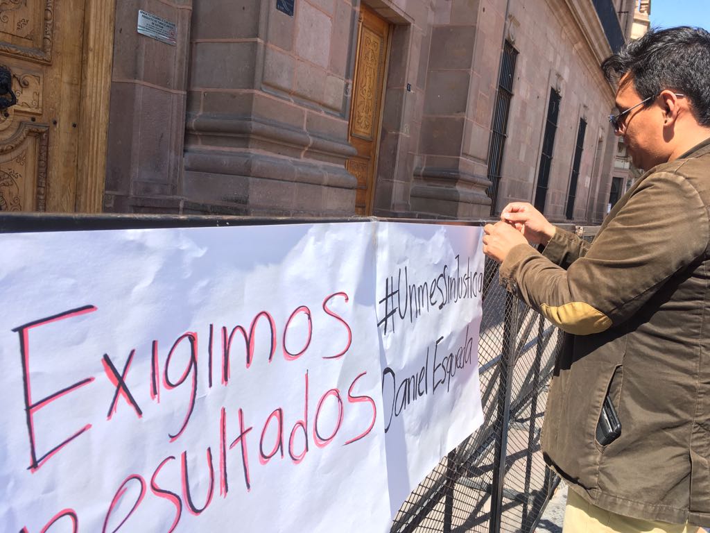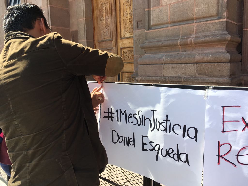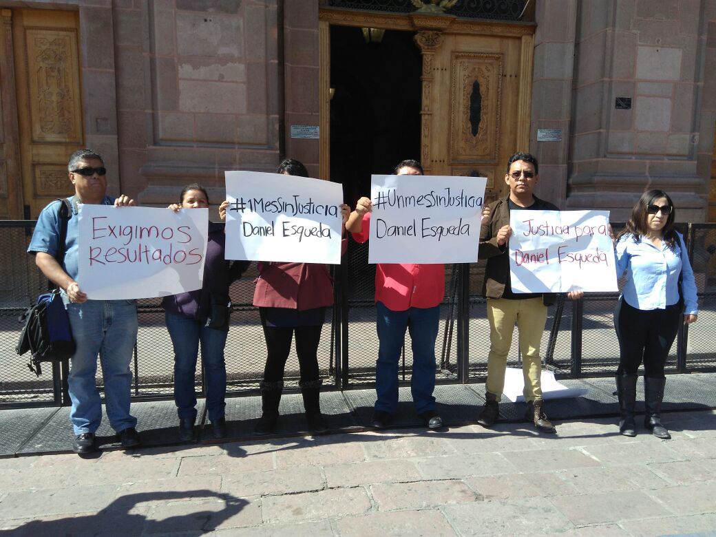 Un grupo de reporteros hizo presencia en la Plaza de Armas y frente a palacio de gobierno exigieron justicia para Edgar Daniel Esqueda Castro, foto periodista asesinado hoy hace un mes.