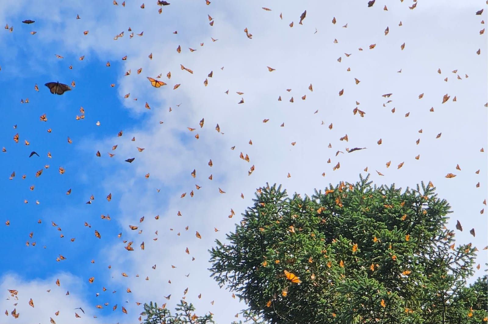 Como parte de las actividades, participaron en una práctica de monitoreo realizada en el Santuario “El Rosario”, en Michoacán, donde tuvieron la oportunidad de observar colonias ya formadas.