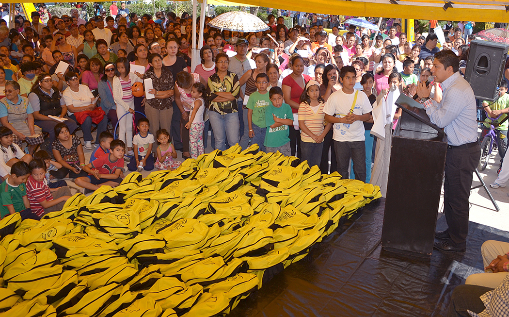 Pero lo más importante fue el momento de ayer cuando en la Progreso el alcalde empezó la entrega de mochilas amarillas y útiles escolares. Así lo reportó el ayuntamiento.