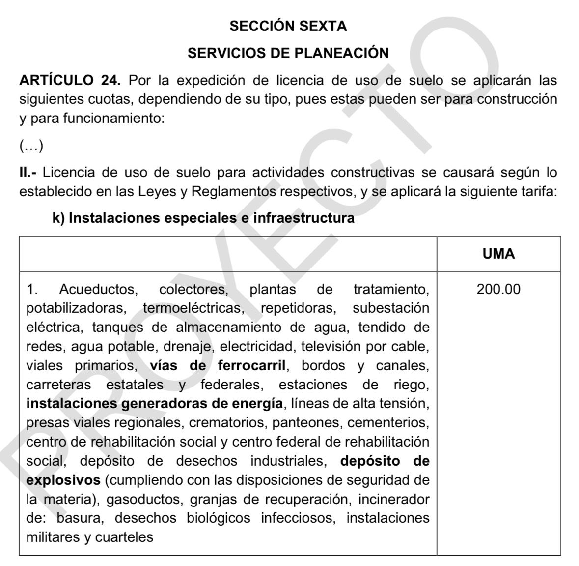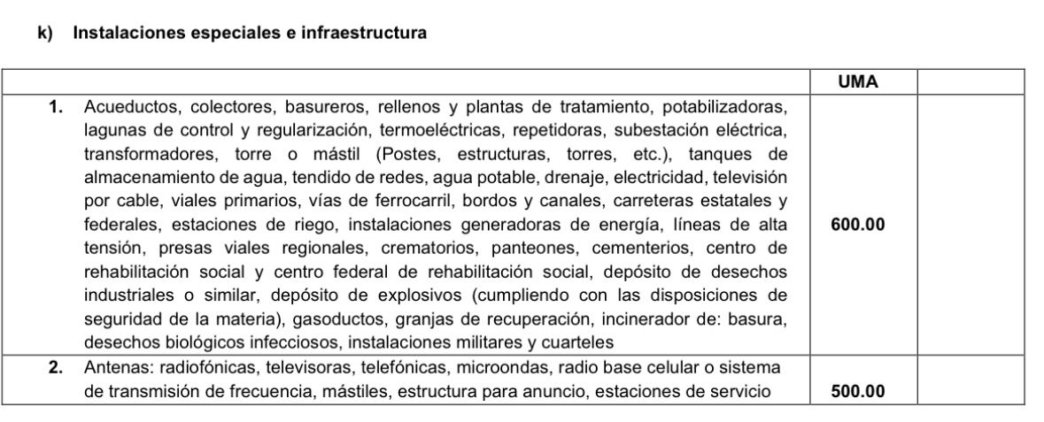 La problemática persiste, porque la disposición fue replicada en la nueva ley de ingresos y, de acuerdo con la información contenida en el Plan de San Luis, el cobro correspondiente a “instalaciones especiales e infraestructura” pasó de 200 UMA en 2025, es decir 22 mil 628 pesos a 600 UMA en 2026 —equivalente a 70 mil 386 pesos—, triplicando el monto originalmente cuestionado, como se observa en las tablas oficiales publicadas en el Periódico Oficial.