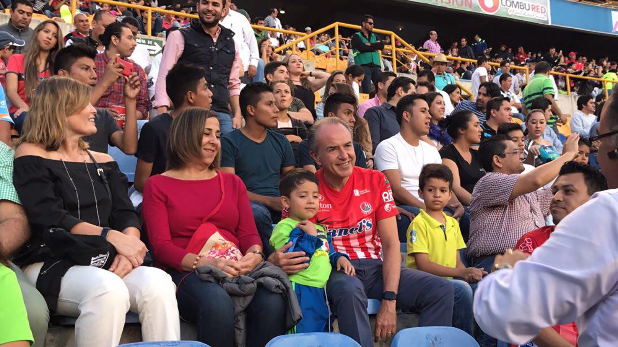Carreras dejó atrás al secretario de Seguridad (tal vez para evitar una rechifla) y buscó asientos junto con su esposa. Alguien que por problemas geográficos y seguramente a falta de una buena vista y conocimientos futbolísticos, debió confundir al gobernador con El Niño Torres, pues más pronto que rápido le puso al escuincle de unos tres años para una fotografía.