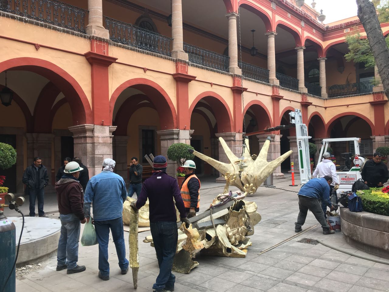 En un video de la UASLP que data de 2002 se destaca que “nunca se había realizado una restauración de tal magnitud”, sin embargo, ahora, la armonía arquitectónica del patio central se ha vulnerado con el monumento que el rector Villar Rubio ordenó que fuera erigido en ese lugar.