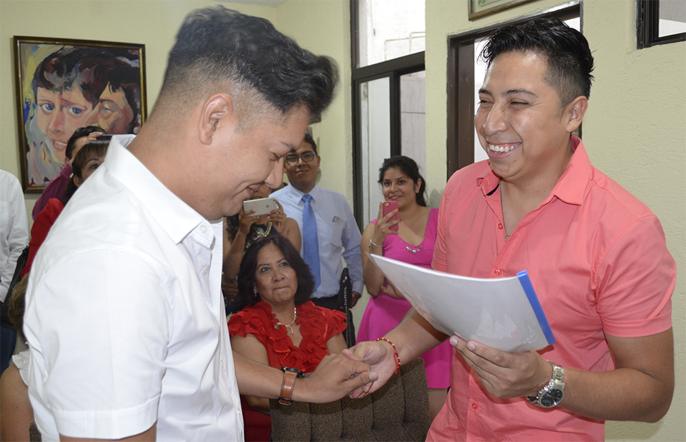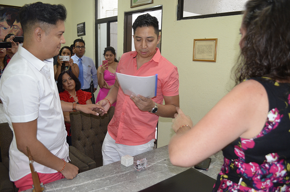 Daniel Essau, de 34 años de edad y Mario Alberto de 35, aseguraron haber acudido por su propia voluntad, sin presión y convencidos de que su unión “es para el resto de sus vidas”.