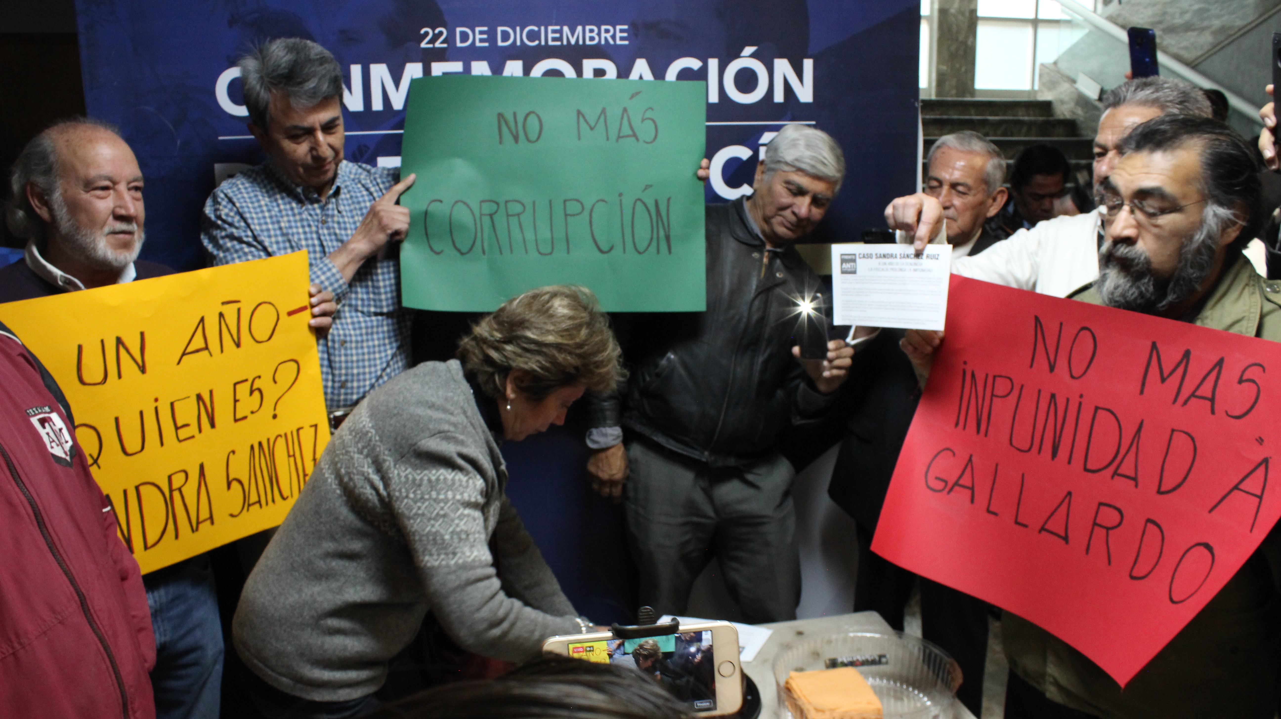Con mariachis y pastel en las instalaciones de la Fiscalía General del Estado, integrantes del Frente Ciudadano Anticorrupción (FCA), Ciudadanos Observando y del Comité de Participación Ciudadana del Sistema Estatal Anticorrupción (CPC-SEA) “festejaron”, el primer aniversario de la denuncia en contra de Ricardo Gallardo Juárez por el caso “Sandra Sánchez Ruiz”.