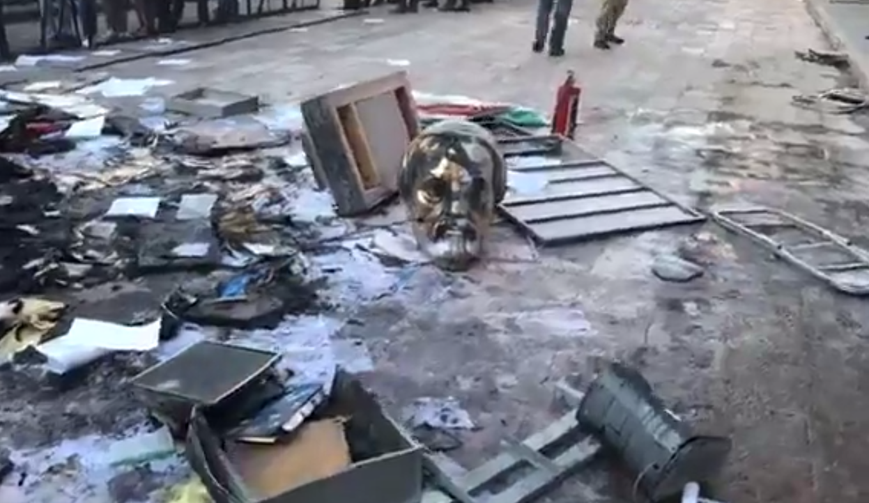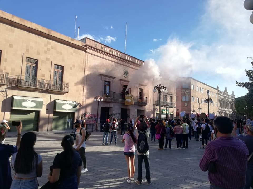 Al llegar a la Plaza de Armas, un grupo de personas ingresó por la fuerza al Congreso del Estado, sustrajeron documentos, mobiliario, la cabeza de bronce de Ponciano Arriaga y los arrojaron a la calle para quemarlos. Asimismo, realizaron diversas pintas en calles y la fachada de la sede del Poder Legislativo.