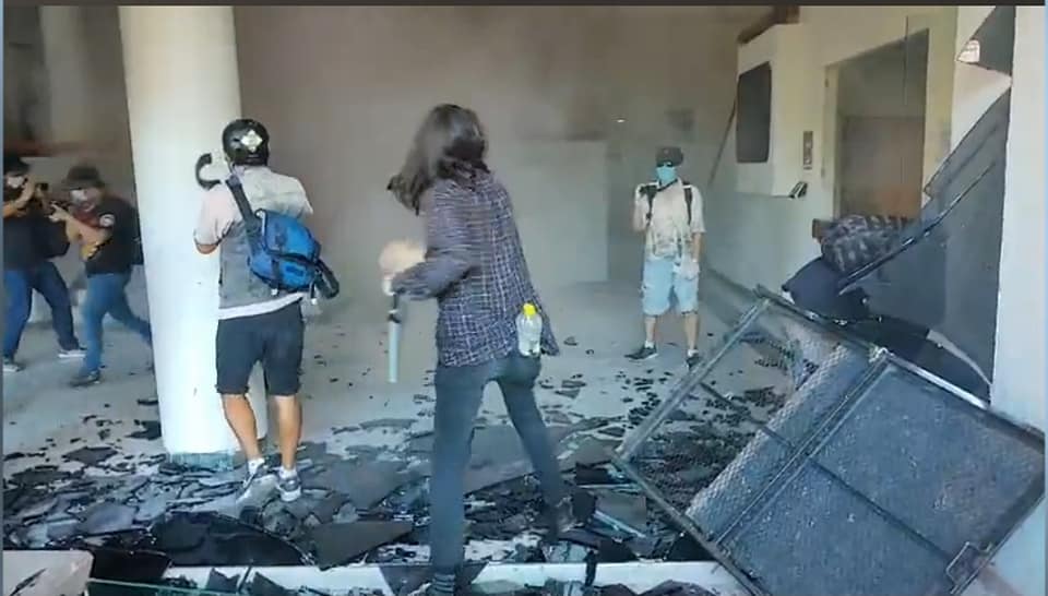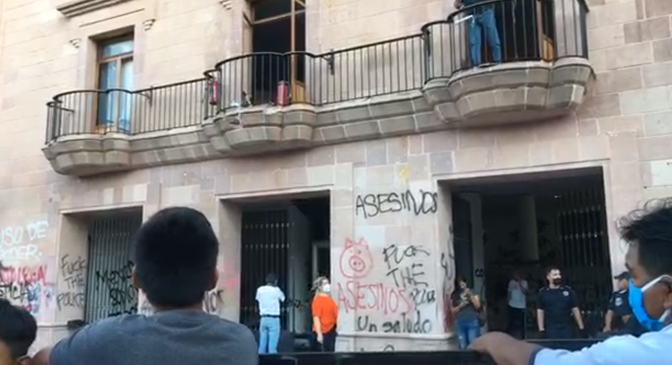 El Palacio de Gobierno recibió algunas pedradas que lograron romper algunas ventanas.