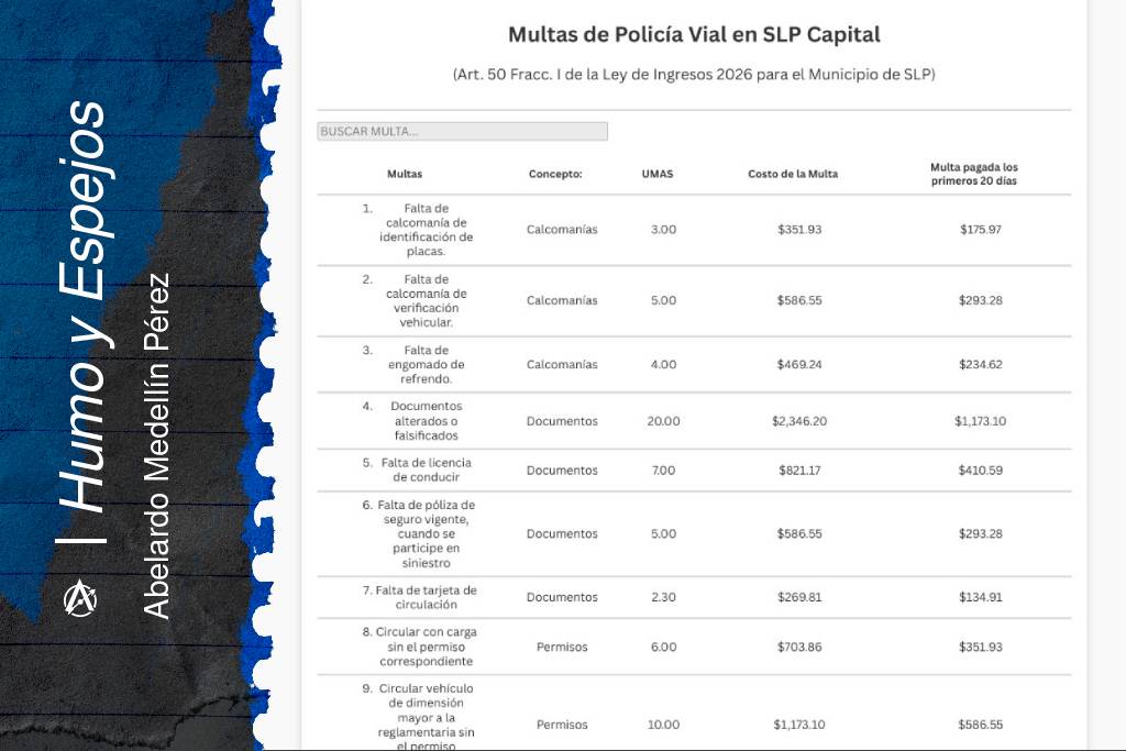 Por ahora, este buscador aplica únicamente para el municipio de San Luis Potosí, pues el cálculo está hecho con la Ley de Ingresos del Ayuntamiento capitalino, pero este puede ser el primer esfuerzo de una serie de buscadores que ayuden a conocer con mayor rapidez, precisión y respaldo legal las implicaciones de una falta administrativa.