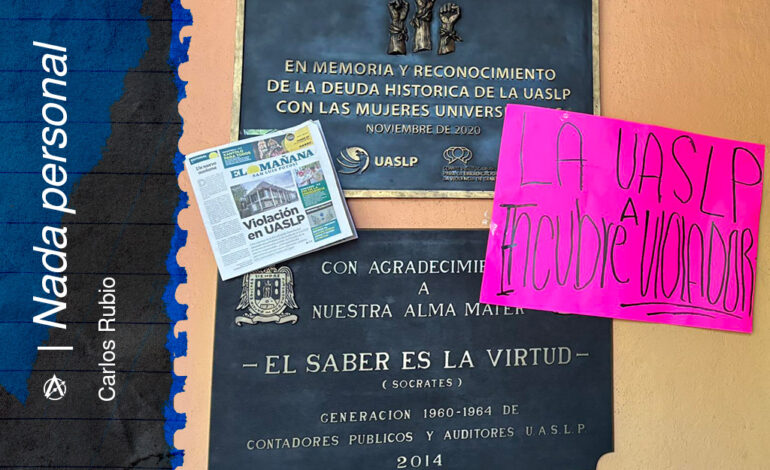 Carlos Rubio Ni si quiera lo vieron venir. Mientras las autoridades universitarias descansaban, el fin de semana se maquinaba la noticia: “Violan a alumna dentro de la UASLP” y “Violación en la UASLP”, titularon los dos primeros medios que tuvieron la información, uno incluso hizo señalamientos con base en la denuncia presentada en la Fiscalía … Sigue leyendo El golpe a la UASLP