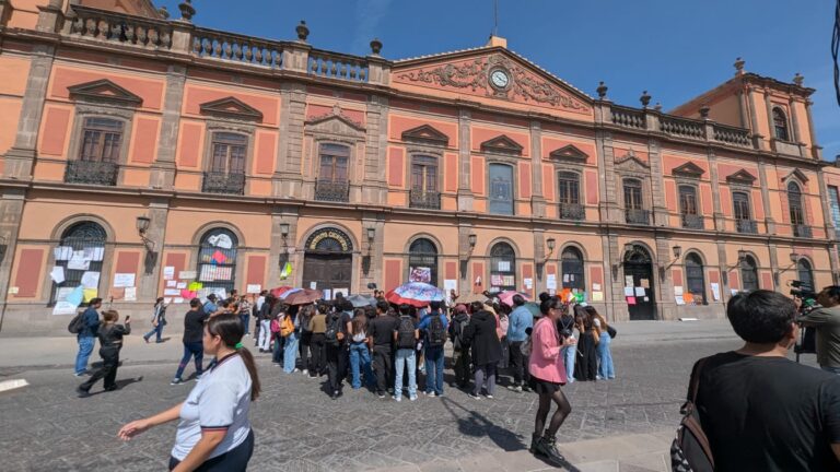 Desiree Madrid En una jornada marcada por la inconformidad y la exigencia de diálogo, estudiantes de la Facultad de Derecho de la Universidad Autónoma de San Luis Potosí (UASLP) marcharon la mañana de este viernes desde la calle Tomás Estévez hasta el Edificio Central, en la calle Morelos. Con consignas como “¡Somos estudiantes, no porros!”, … Sigue leyendo Estudiantes de la Facultad de Derecho entregan nuevo pliego petitorio al rector