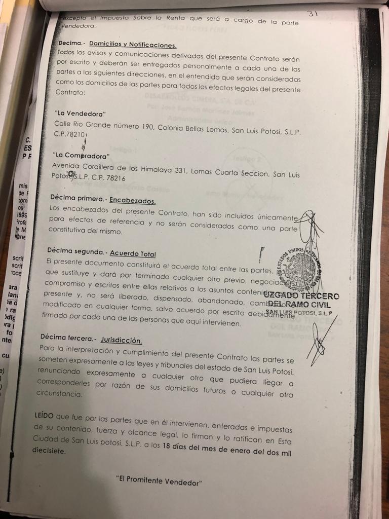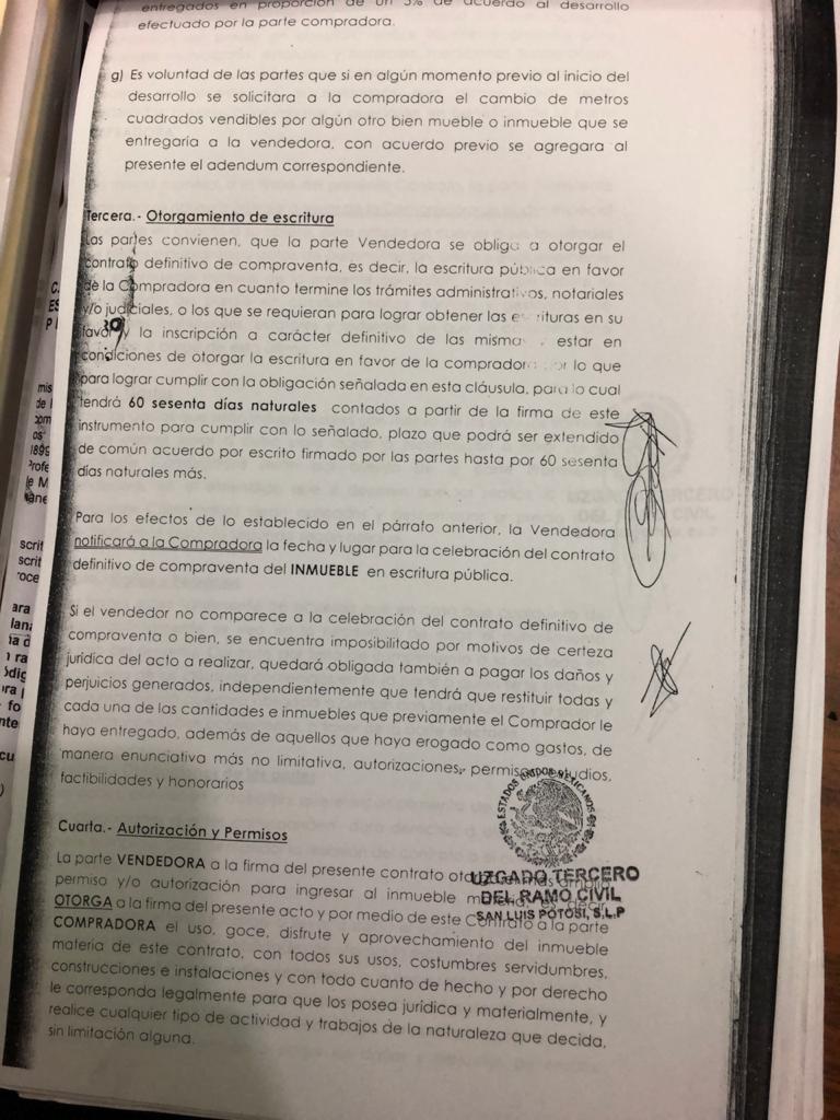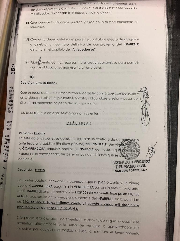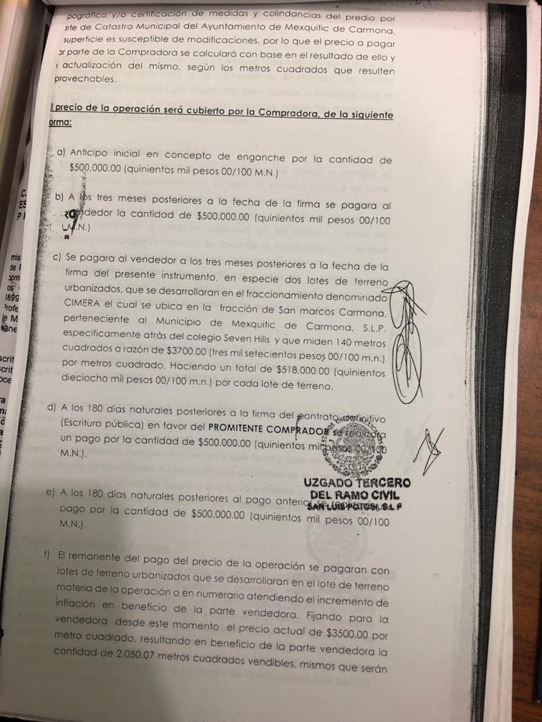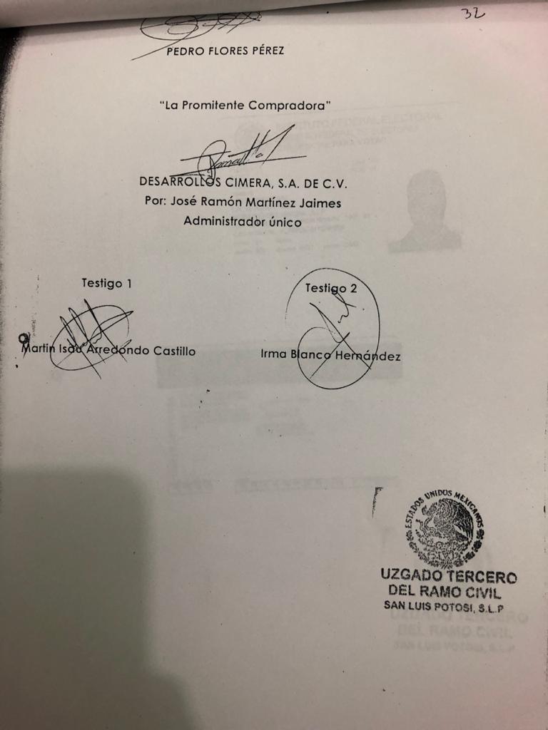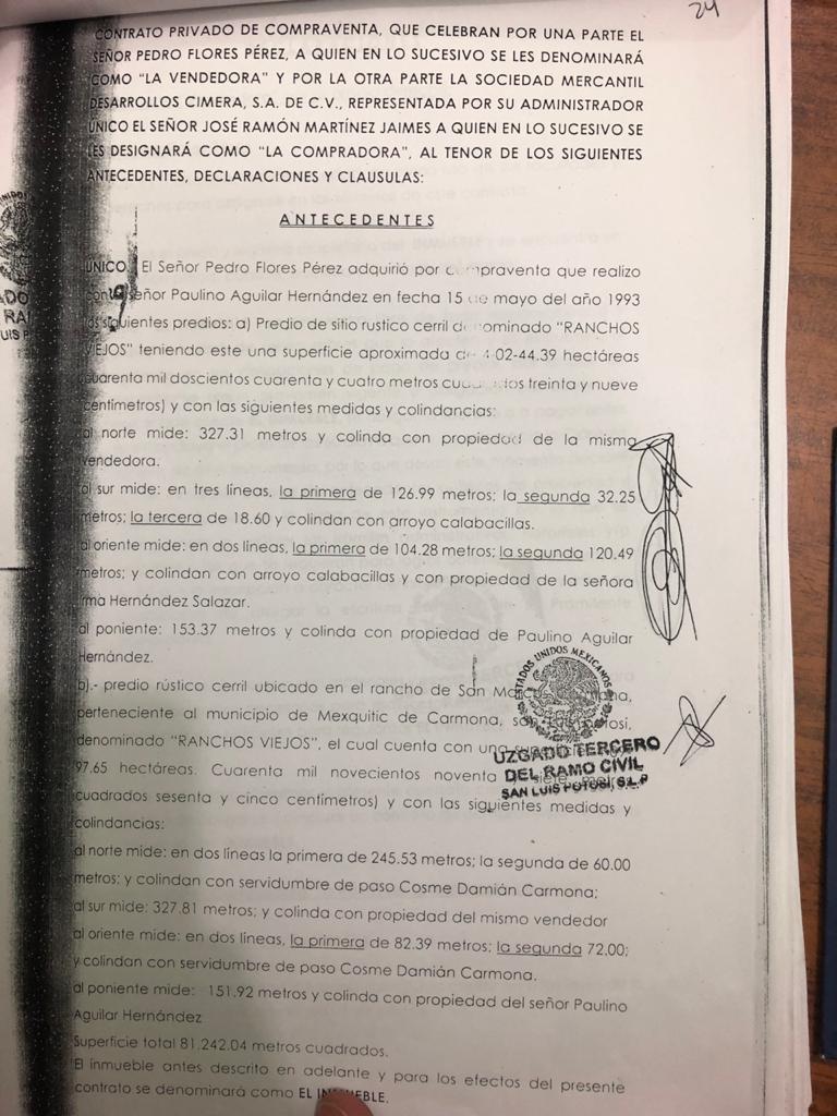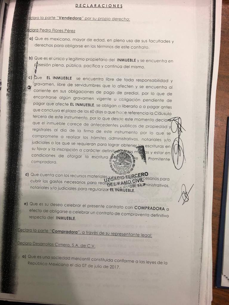 Un ejemplo de la maquinación empleada para apropiarse de los terrenos consta en el contrato privado de compraventa celebrado entre Pedro Flores Pérez y la empresa Desarrollos Cimera S.A. de C.V., representada por José Ramón Martínez Jaimes el 18 de enero del 2017 por 81 mil metros cuadrados.