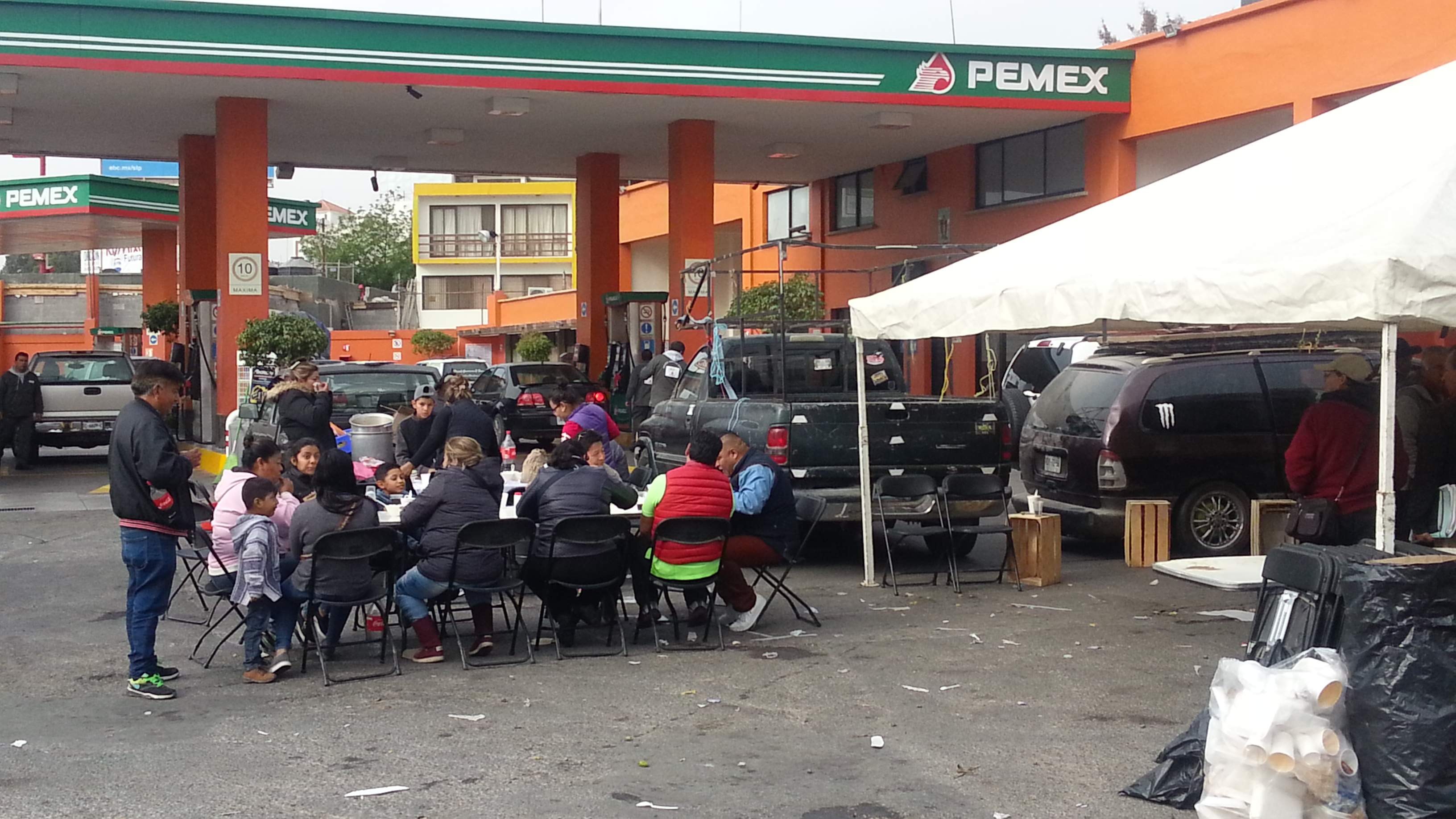 Después de la misa, el precandidato a diputado federal acompañó a su padre al punto de partida de la caravana de los sanjuaneros, donde el Ayuntamiento les ofreció a los peregrinos menudo, chilaquiles y tamales, antes de su partida.