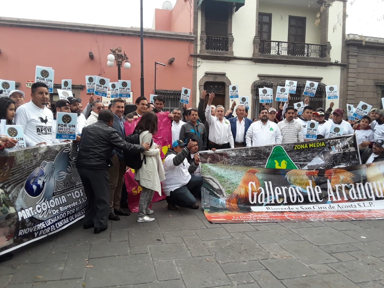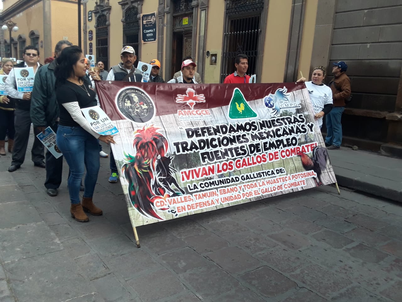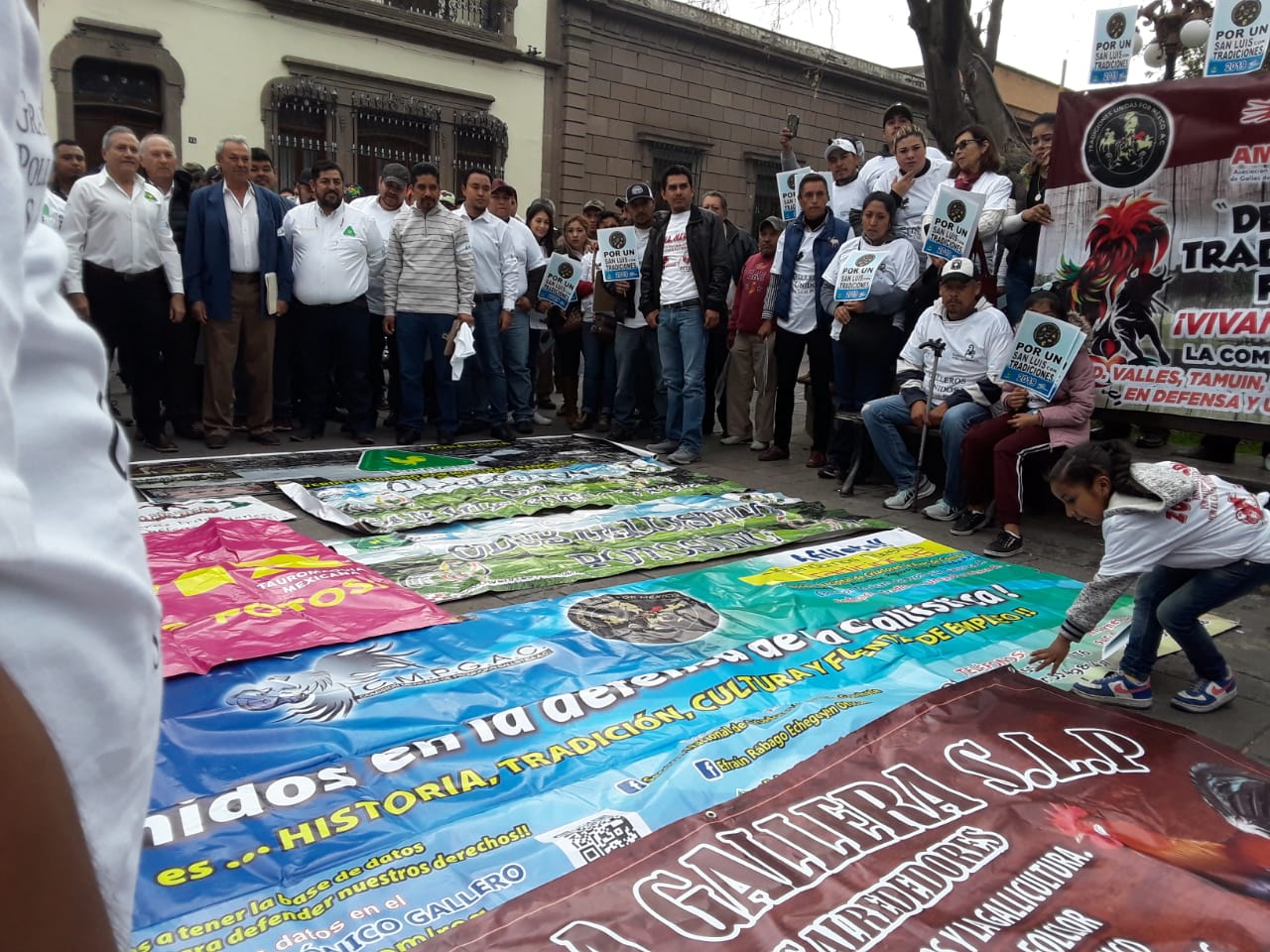 Galleros y taurinos se manifestaron en contra de la iniciativa del diputado Pedro César Carrizales Becerra, con la que pretende que se prohíban las peleas de animales y que en las corridas de toros el animal no sea sacrificado; asimismo, los quejosos aprovecharon para presentar su iniciativa con la que buscan que estas actividades (cabalgatas, tauromaquia, jaripeo y peleas de gallos) sean consideradas patrimonio cultural de San Luis Potosí.
