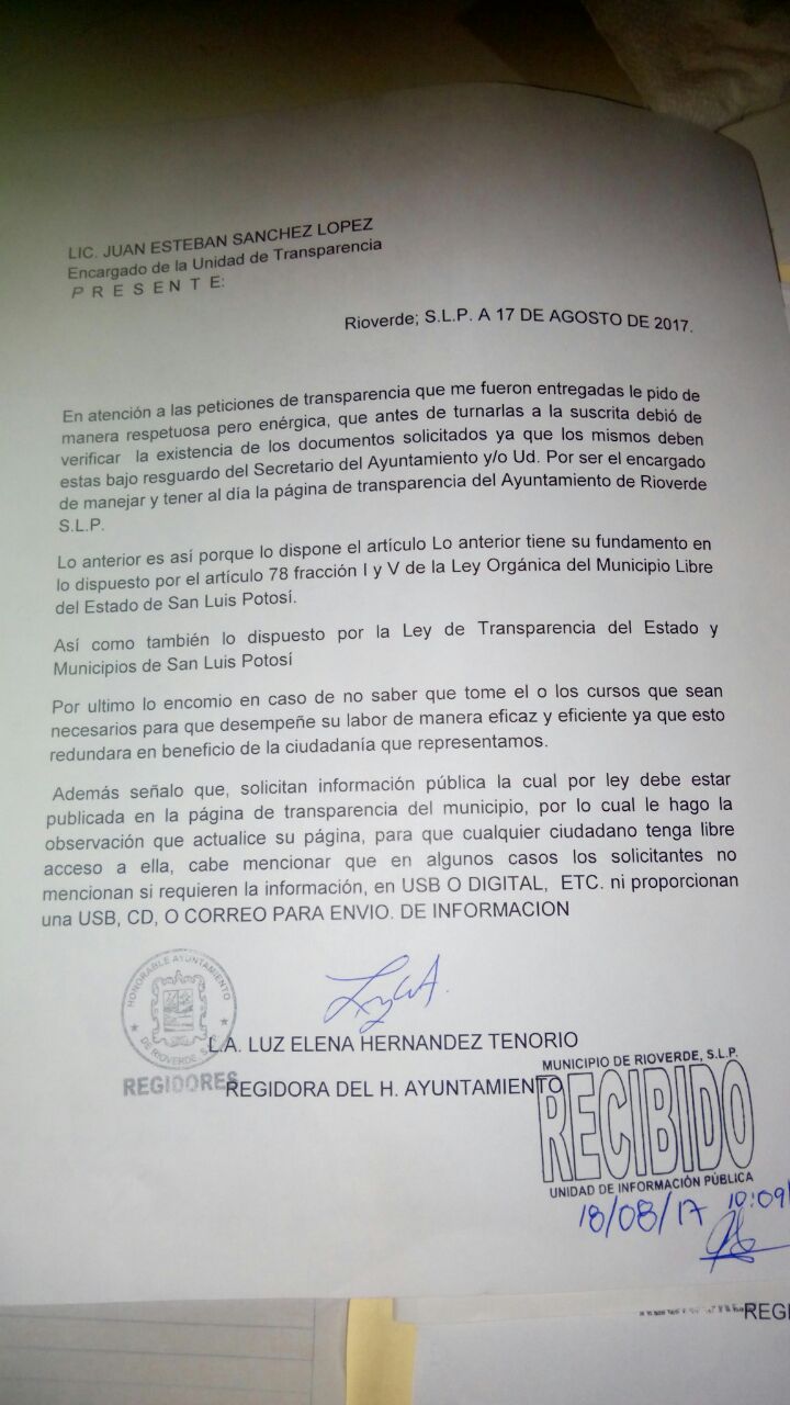 El día 8 del mes que transcurre Hernández Tenorio interpuso en el TEESLP un Juicio Para la Protección de los Derechos Político Electorales del Ciudadano, contra el alcalde panista, José Ramón Torres García, síndicos, regidores y el Secretario General del Ayuntamiento, Rubén González Juárez, porque “me dan un trato discriminatorio”.