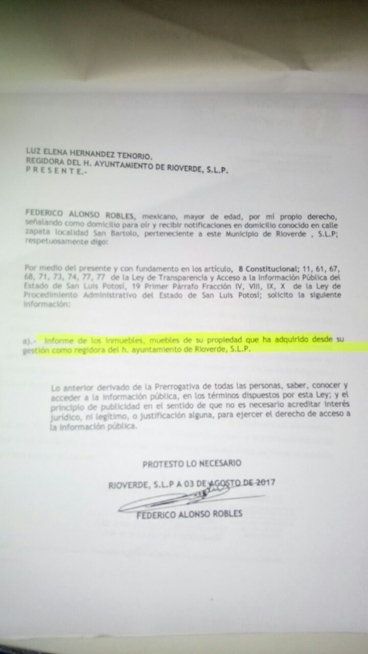 Un peticionario consignó su domicilio en una comunidad llamada “Río Grande, que yo no sabía que existiera en Rioverde”, aseveró.