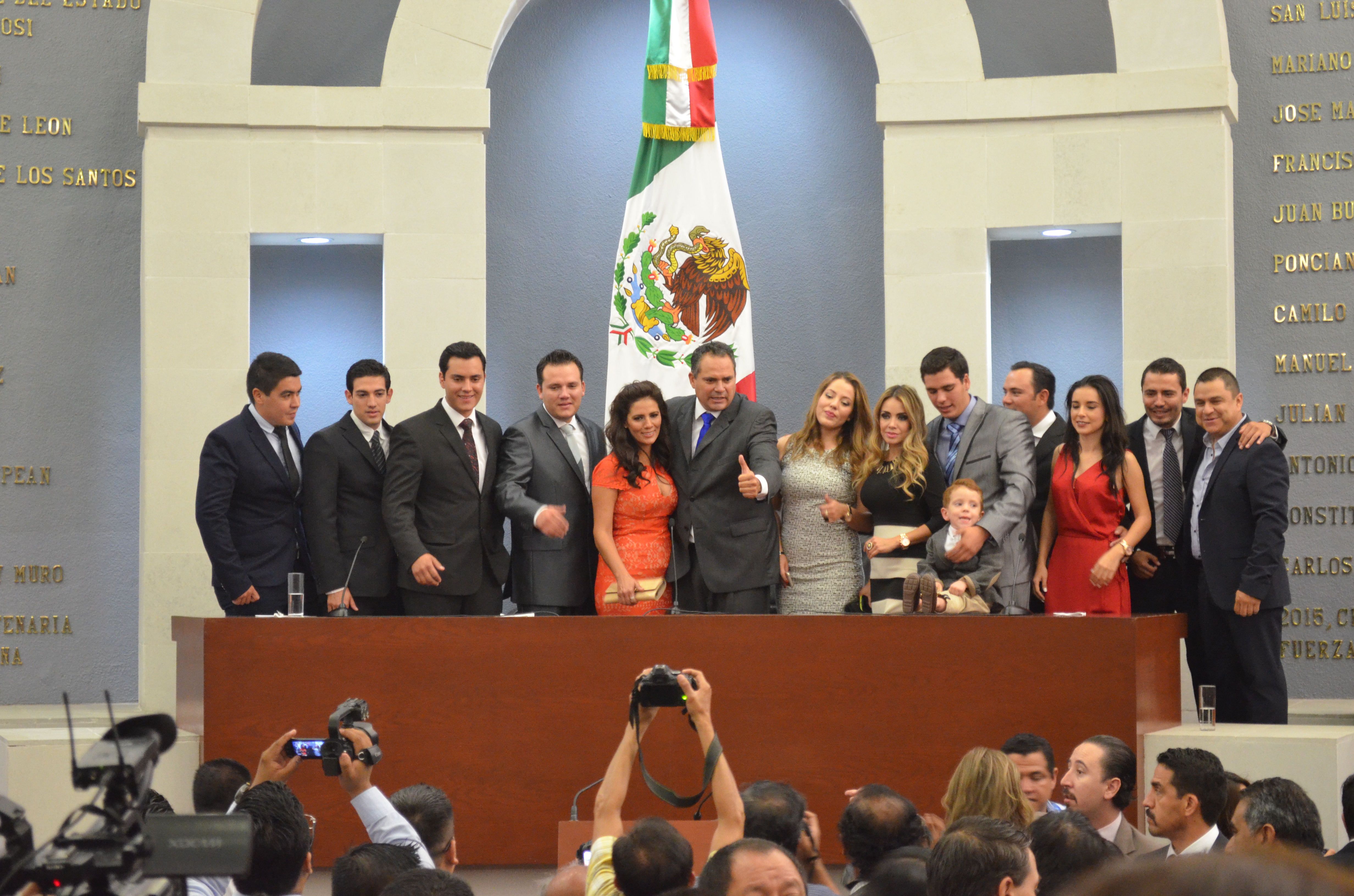 Tan luego concluyó el acto protocolario de instalación de la LXI Legislatura Local, los nuevos diputados convirtieron el Salón de Plenos del Congreso del Estado en salón de eventos sociales. Presídium y frontispicio los ocuparon para sacarse la foto del recuerdo acompañados de familiares, amigos y achichincles. Fue un festín.