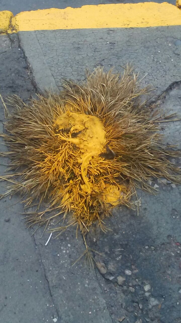 A varias semanas del acto de los pintores de guarniciones, el animal muerto aún sigue en el sitio.