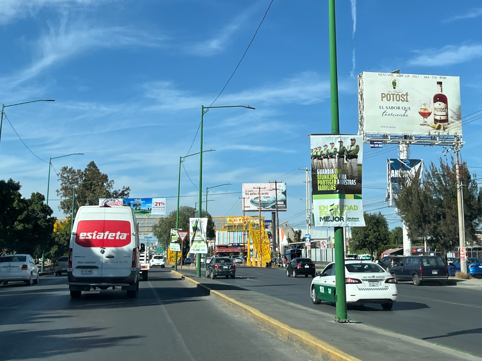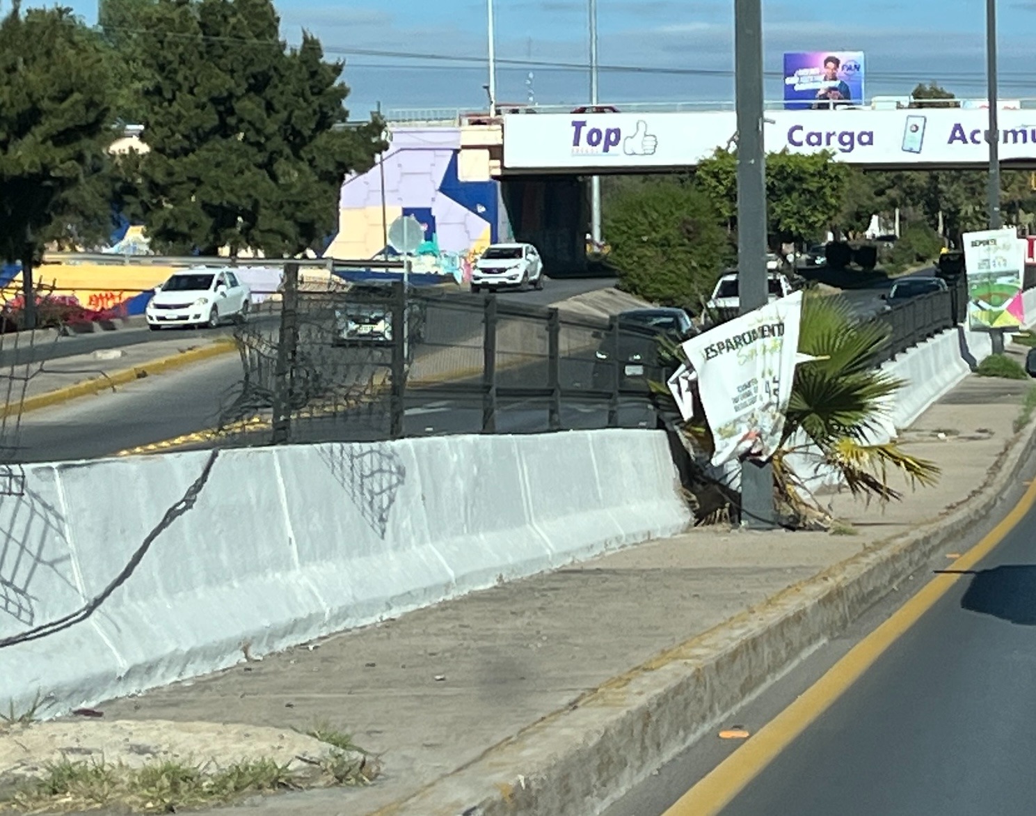 Pero el tema no es exclusivo del gobierno estatal. En cuanto inicia la jurisdicción de Soledad de Graciano Sánchez en la carretera a Matehuala, desaparece la propaganda gallardista y comienzan los pendones alusivos a la administración de Juan Manuel Navarro. El diseño es casi el mismo, con el tono característico del Partido Verde Ecologista de México, que con tanta basura plástica y visual, lo único que tiene de ecologista es el nombre.