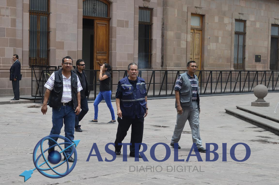 Faltaba Manuel Barrera y el contingente se volvió a dividir en las dos entradas. En eso, muy tranquilo, flanqueado por dos guaruras, paseó frente al recinto legislativo el Director de Seguridad Pública del Estado, Ángel Gámez Segovia.