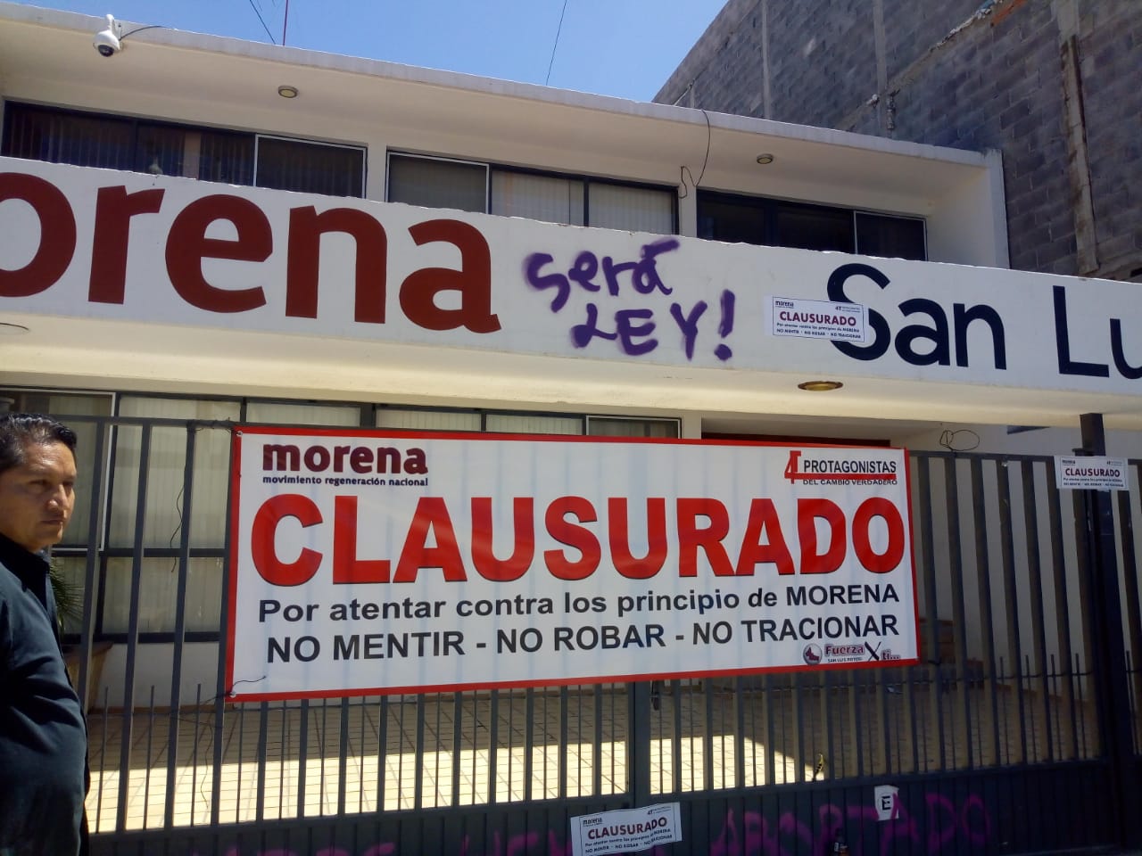 Por haber sido excluidos por parte de la dirigencia estatal del Movimiento de Regeneración Nacional (morena), militantes del municipio de Tamazunchale realizaron una clausura simbólica de las oficinas estatales de este instituto político, además de pedir la renuncia del dirigente Sergio Serrano Soriano y una auditoría al manejo de los recursos de los últimos tres años.