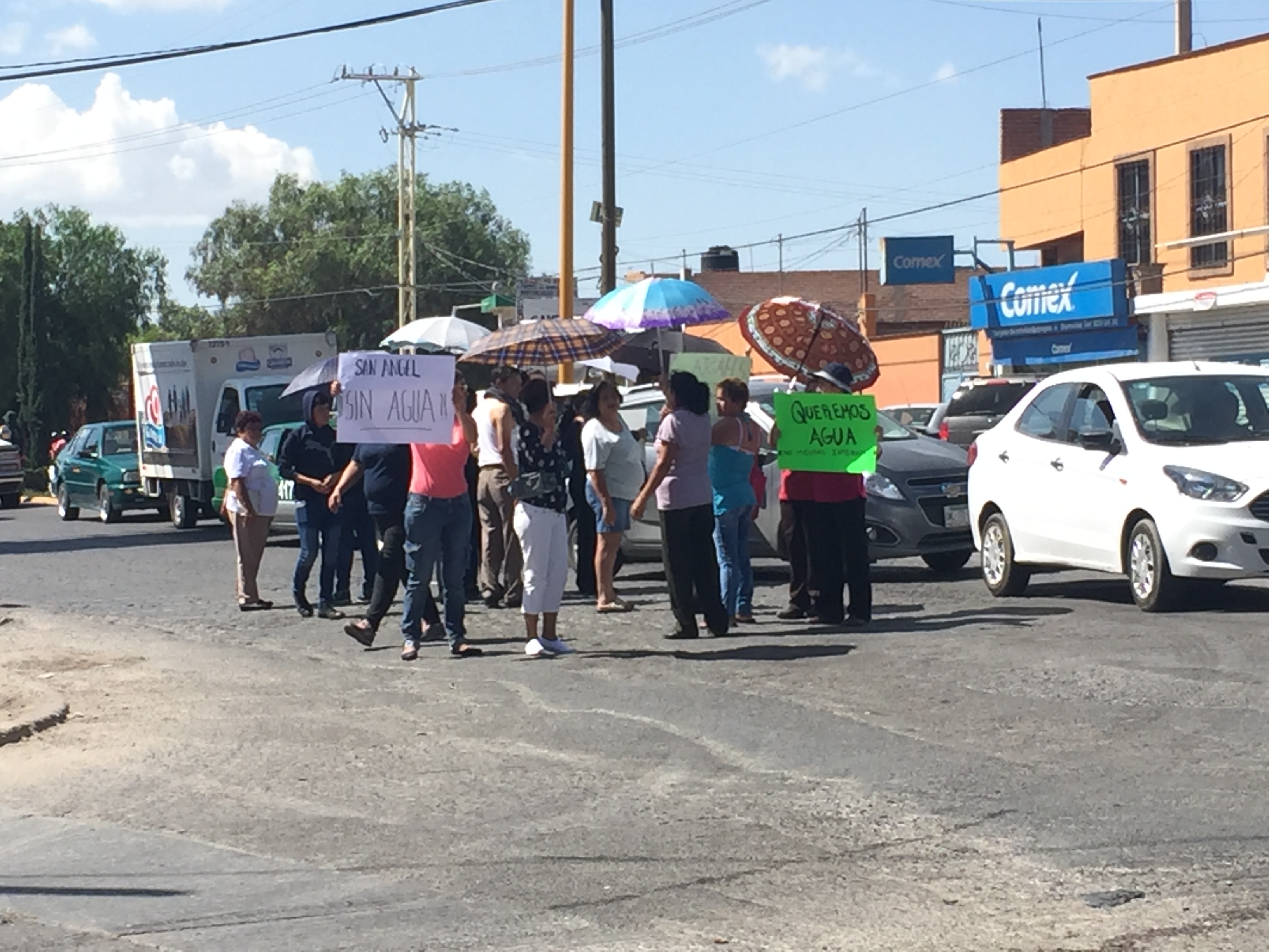 Cerca de treinta vecinos de la colonia San Ángel bloquearon parcialmente la carretera a Zacatecas a la altura de su intersección con la avenida del Sauce para protestar por la falta de agua que padecen desde hace, por lo menos, tres semanas.
