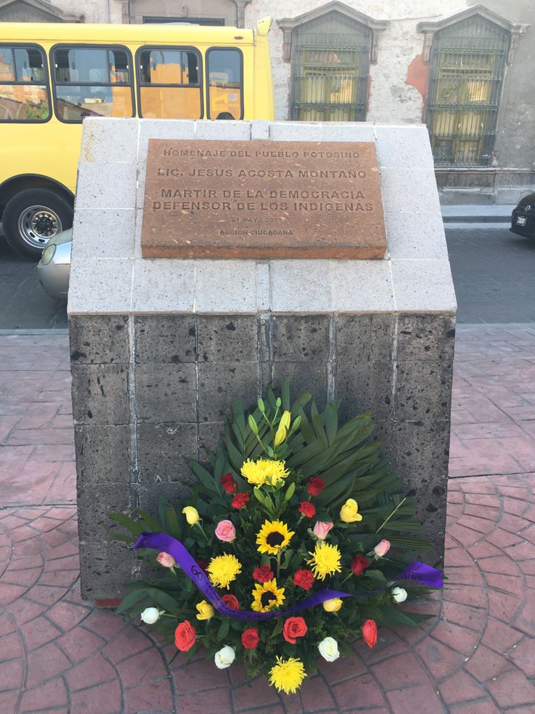 Como parte del acto conmemorativo, explicó Stevens Amaro, se repuso la placa de homenaje a Acosta Montaño que fue destrozada por actos de vandalismo.