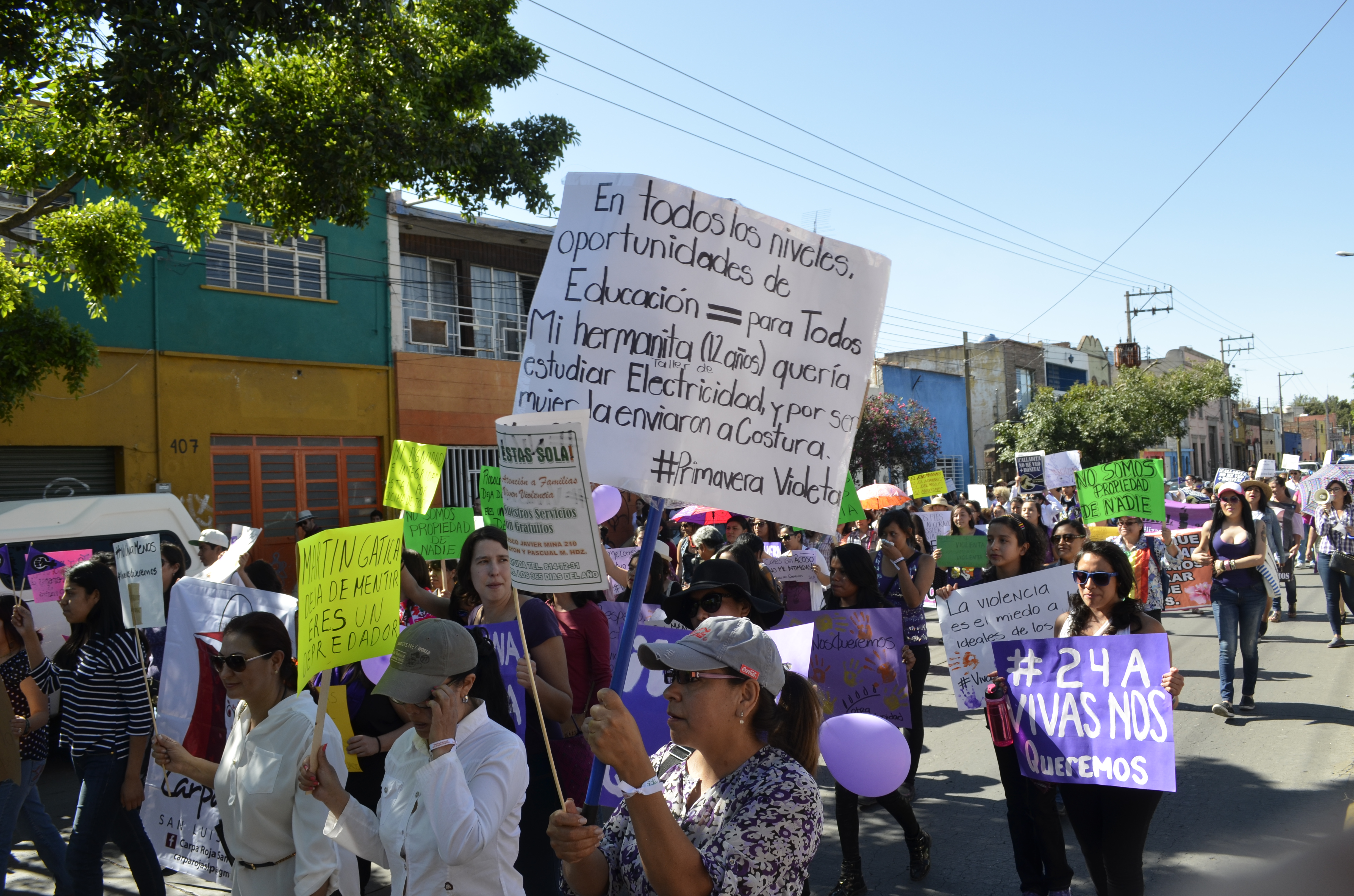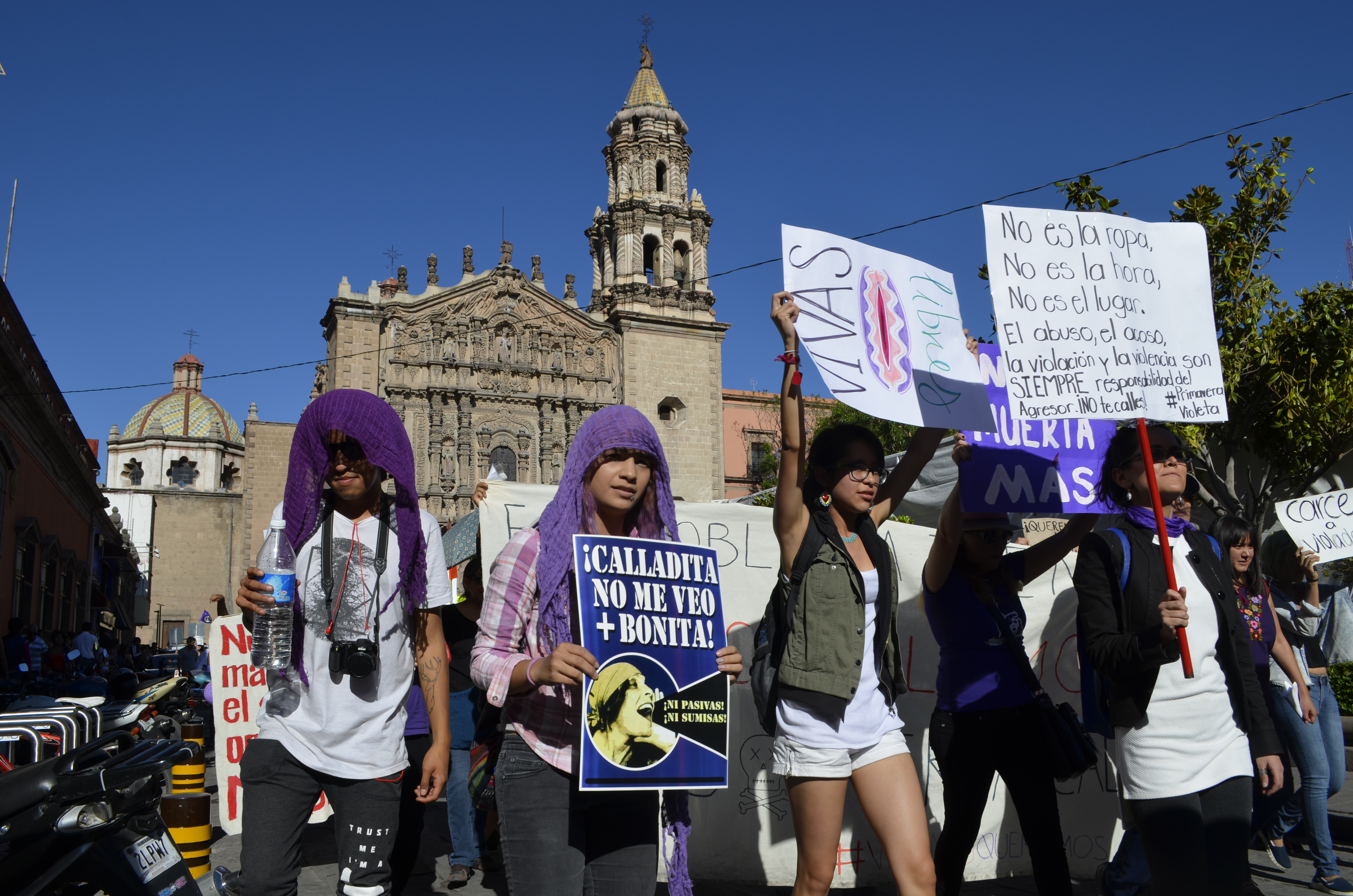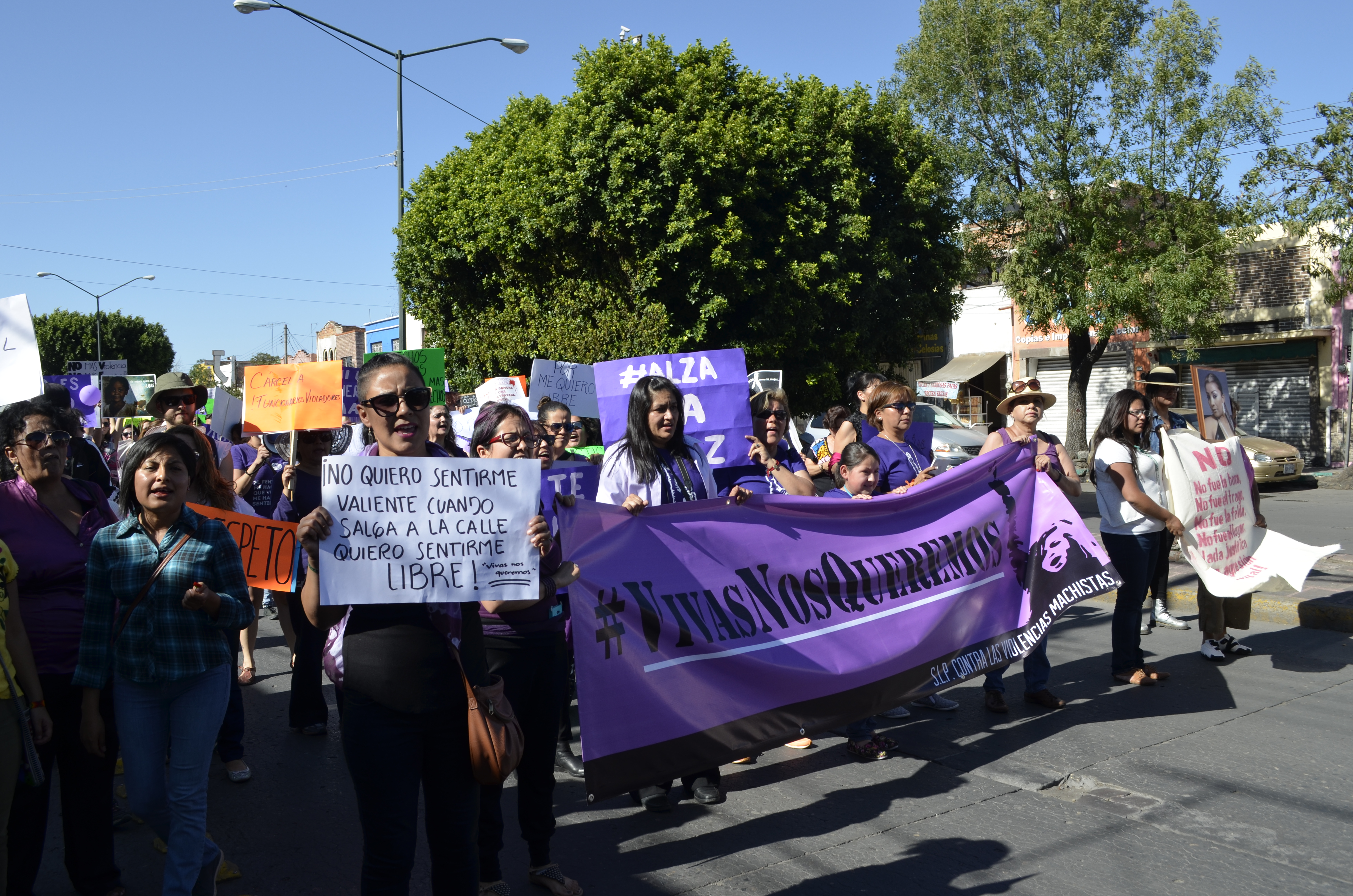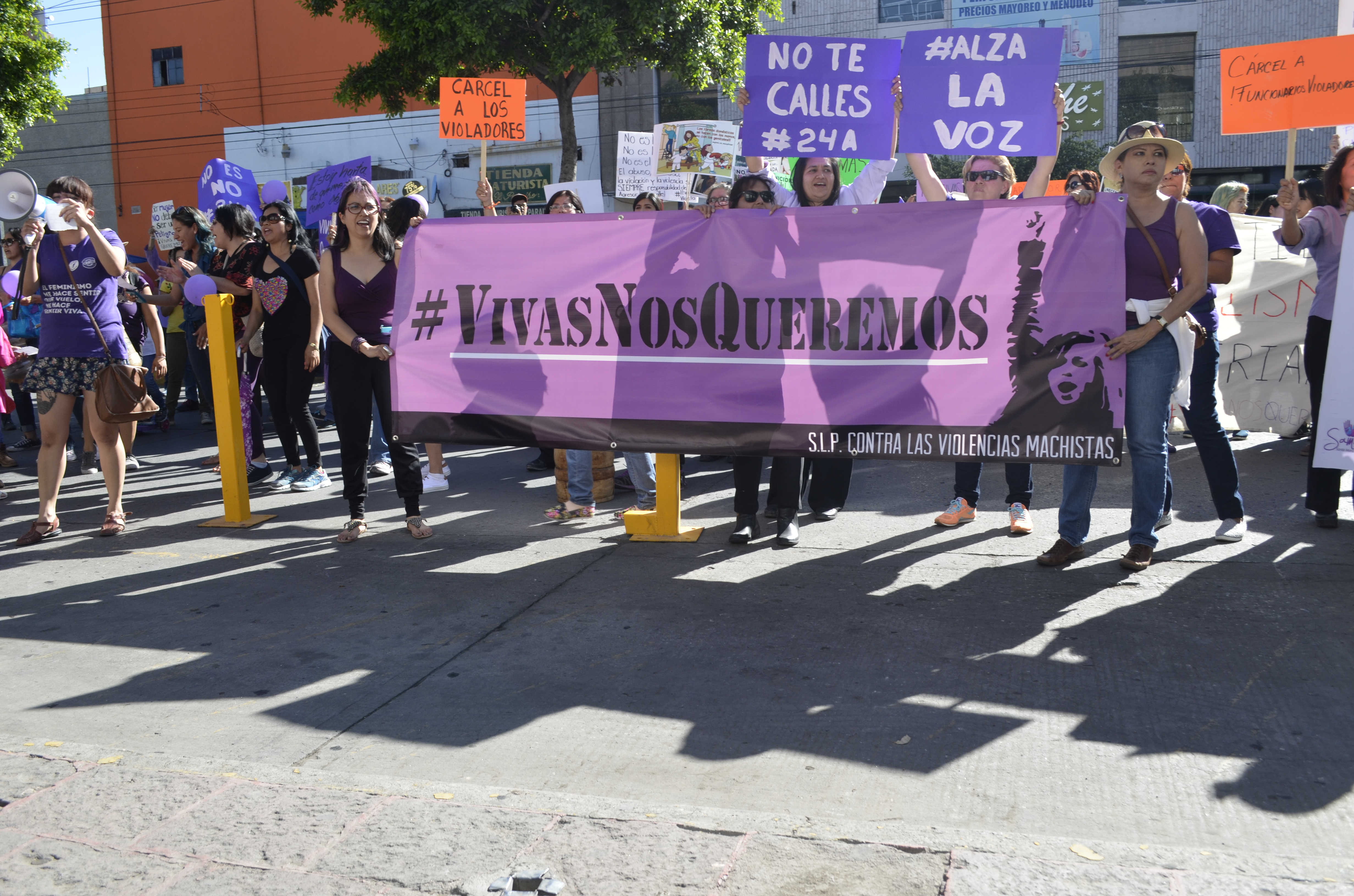 De morado se vistieron las mujeres que en todo el país, demandaron el cese a la violencia en su contra. Ellas no quieren sentirse valientes sino que simplemente desean ir y andar en libertad por las calles. Del barrio de Tlaxcala salieron a protestar porque dicen que en San Luis Potosí no hay justicia para las mujeres, lo cual, es una verdad incontestable. Declaramos que hay complicidad de funcionarios para ignorar las quejas y denuncias de las mujeres, es una de tantas leyendas en mantas y cartulinas mediante las cuales las mujeres hablaron. Repudiamos el feminicidio se leía y ellas, con su rostro sereno y adusto, exigían a voz en cuello y hasta con su mirada que las autoridades entiendan bien el mensaje: ni una muerte más. No más impunidad, no más violaciones sexuales, no más acoso sexual, no más violencia institucional. Por eso, porque como diría el clásico, en el gobierno no entienden que no entienden, se extendió el reclamo de no es no. Nos queremos vivas debe ser una certeza no una aspiración. Es la marcha contra las violencias machistas, pero también las violencias de los criminales, proxenetas y tratantes de blancas, los chulos y padrotes, igual que los esposos, abuelos, tíos, padrinos, primos o hermanos. El mujerío en las calles exigiendo justicia porque ya han dicho que de eso no se van a cansar. Escenas similares y reclamos iguales y exigencias parecidas se escucharon en 43 ciudades del país, pero resonaron de manera más clara y fuerte en Ecatepec, la ciudad con más feminicidios en México y cuna de Enrique Peña Nieto. En todos lados, niñas, adolescentes, jóvenes, madres, abuelas, solteras, casadas o divorciadas porque en San Luis a todas se les mide por igual, con la violencia del ignorante. Todas las mujeres, todos los derechos en un país donde diariamente asesinan a siete mujeres de todas las edades y condiciones sociales. Todas las mujeres y todos los derechos en un San Luis con 124 feminicidios en cinco años.
