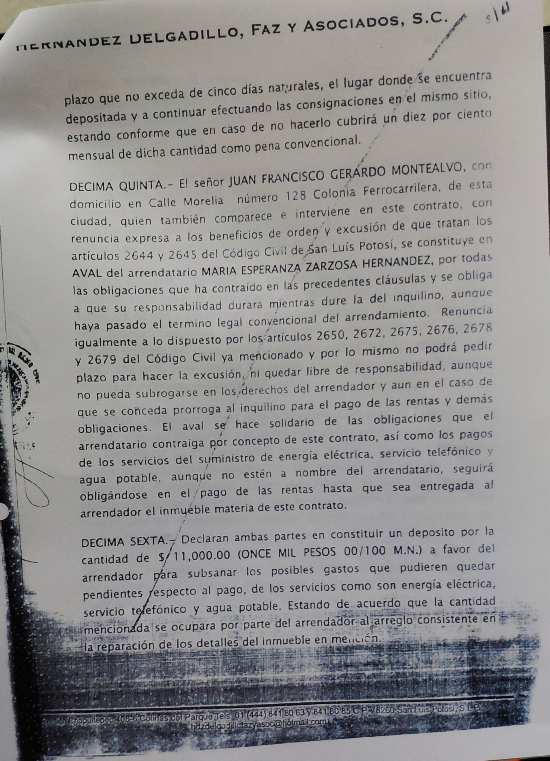 La firma de abogados que presentó la demanda en contra de Juan Francisco Gerardo Montealvo para exigir el pago de las rentas es también “Hernández Degaldillo, Faz y asociados S.C.”.