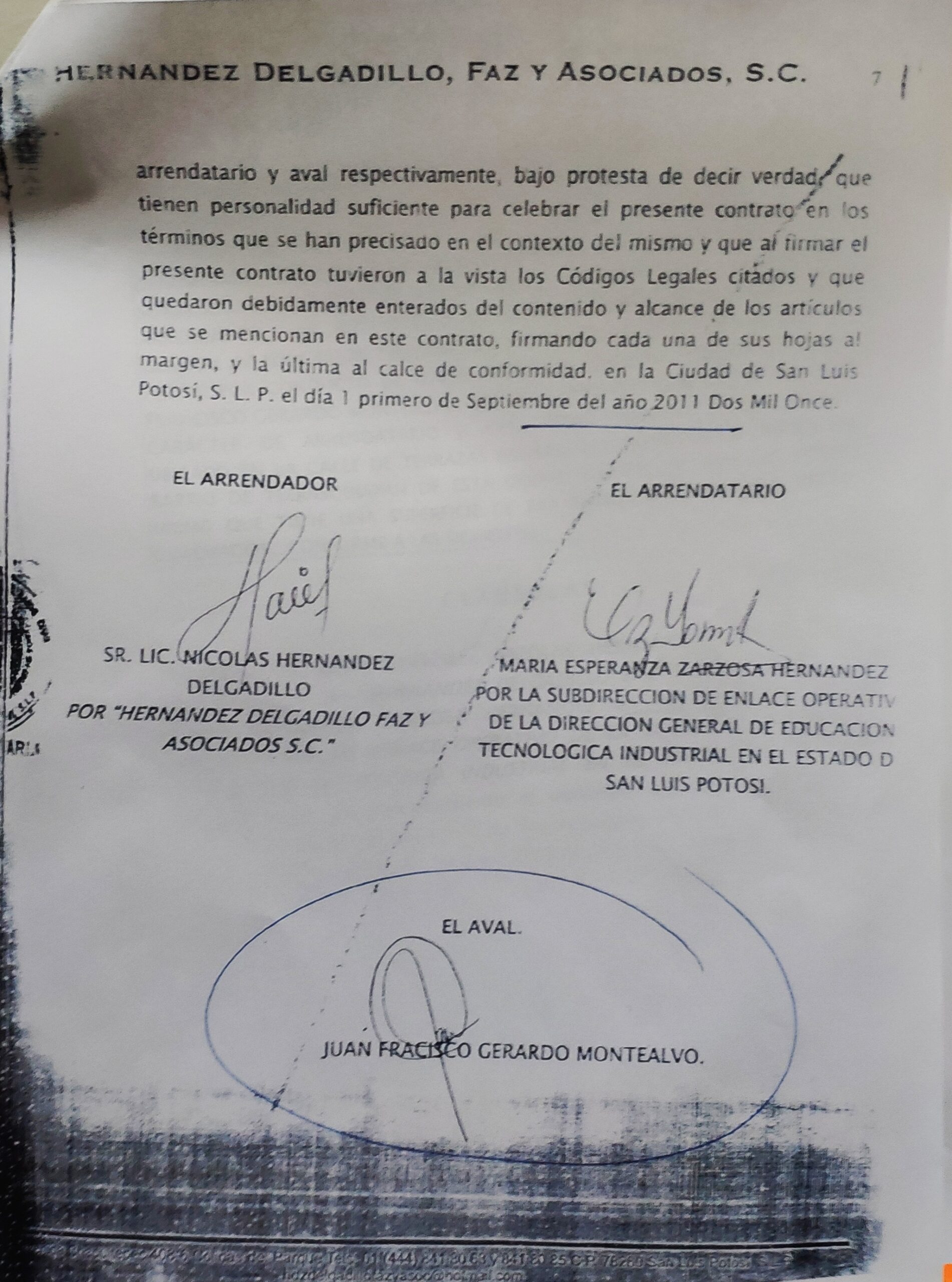 De acuerdo con Juan Francisco Gerardo Montealvo, en 2011, la entonces subdirectora de Enlace Operativo de la DGETI, María Esperanza Zarzosa Hernández, le ordenó que firmara como aval un contrato de arrendamiento “alegando que sería un mero trámite ya que nunca tendría problemas siendo que la SEP estaría siempre en posibilidad de pagar, que sólo era cuestión de cumplir con un requisito”.