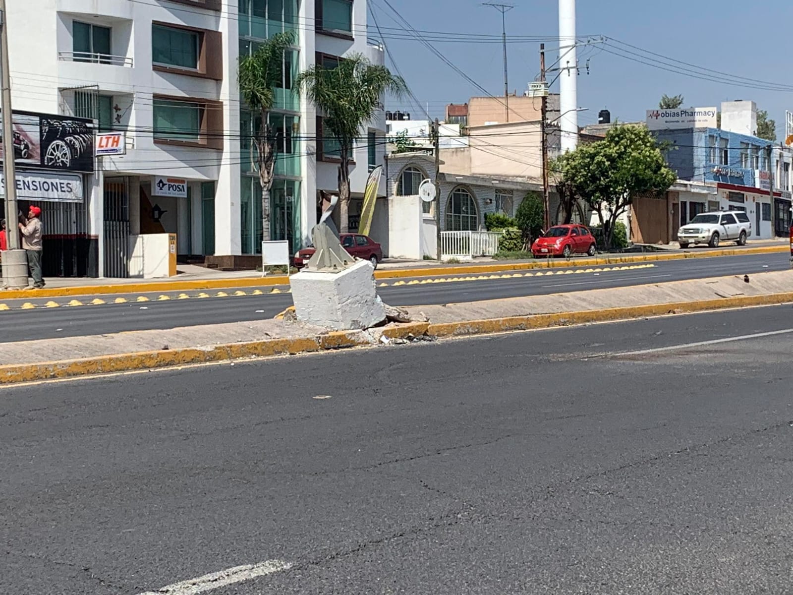 En los carriles centrales de la avenida Salvador Nava Martínez, frente a Zona Universitaria y el asta bandera, se presenta la falta de un muro de contención en donde han ocurrido múltiples accidentes de automóviles que invaden los carriles contrarios y en donde se cobró la vida de un joven 2022.