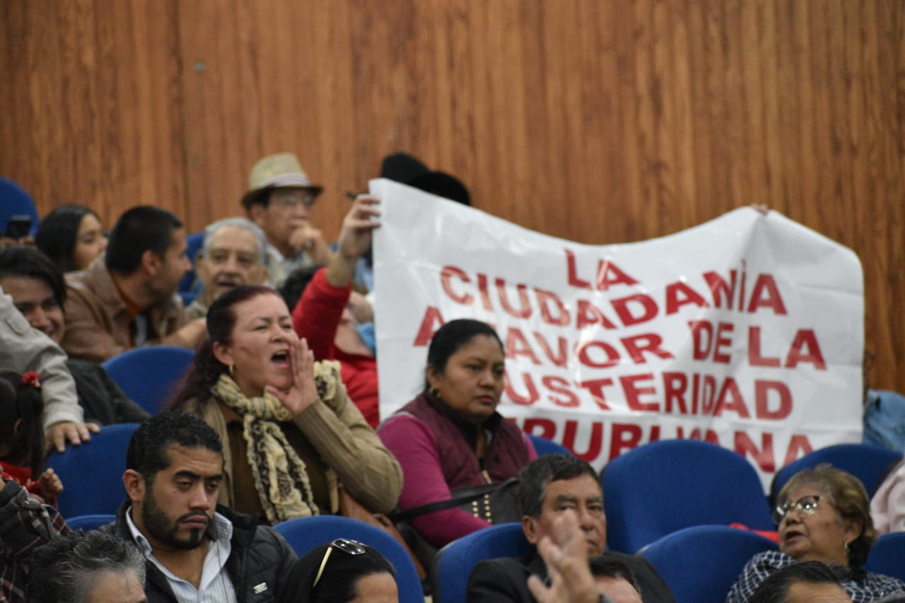 La presidenta de la mesa directiva, Sonia Mendoza Díaz, llamó a los manifestantes al orden, sin embargo, al no atender a la petición, pidió un receso.
