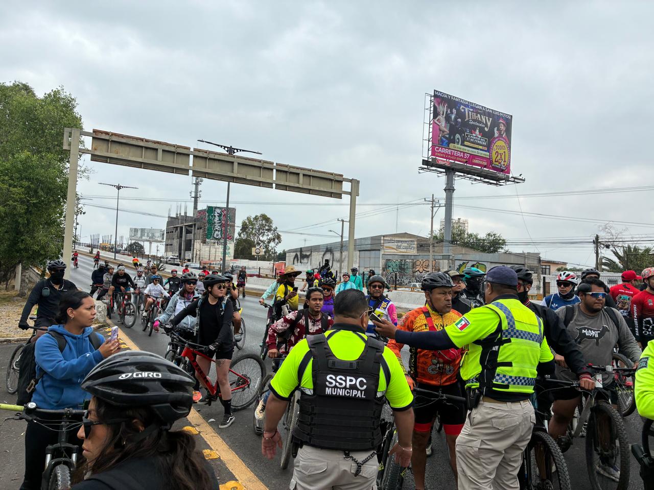 La decisión generó inconformidad entre las y los participantes, quienes reclamaron su derecho a circular de manera libre y segura. El momento más tenso ocurrió cuando un oficial intentó retirar la bicicleta de un ciudadano, lo que derivó en una confrontación directa que evidenció el choque entre la ciudadanía organizada y la autoridad.