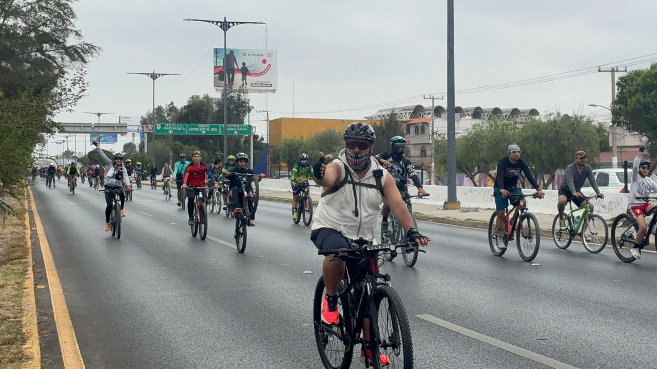 Durante la jornada, esa exclusión se hizo visible. La rodada avanzó de manera pacífica sobre la avenida Salvador Nava, donde por momentos los carriles centrales fueron ocupados por bicicletas, patines y peatones, en un ejercicio simbólico de recuperación del espacio público. Familias completas, jóvenes y personas de distintas edades compartieron la vía en un ambiente que contrastó con el flujo habitual de vehículos.