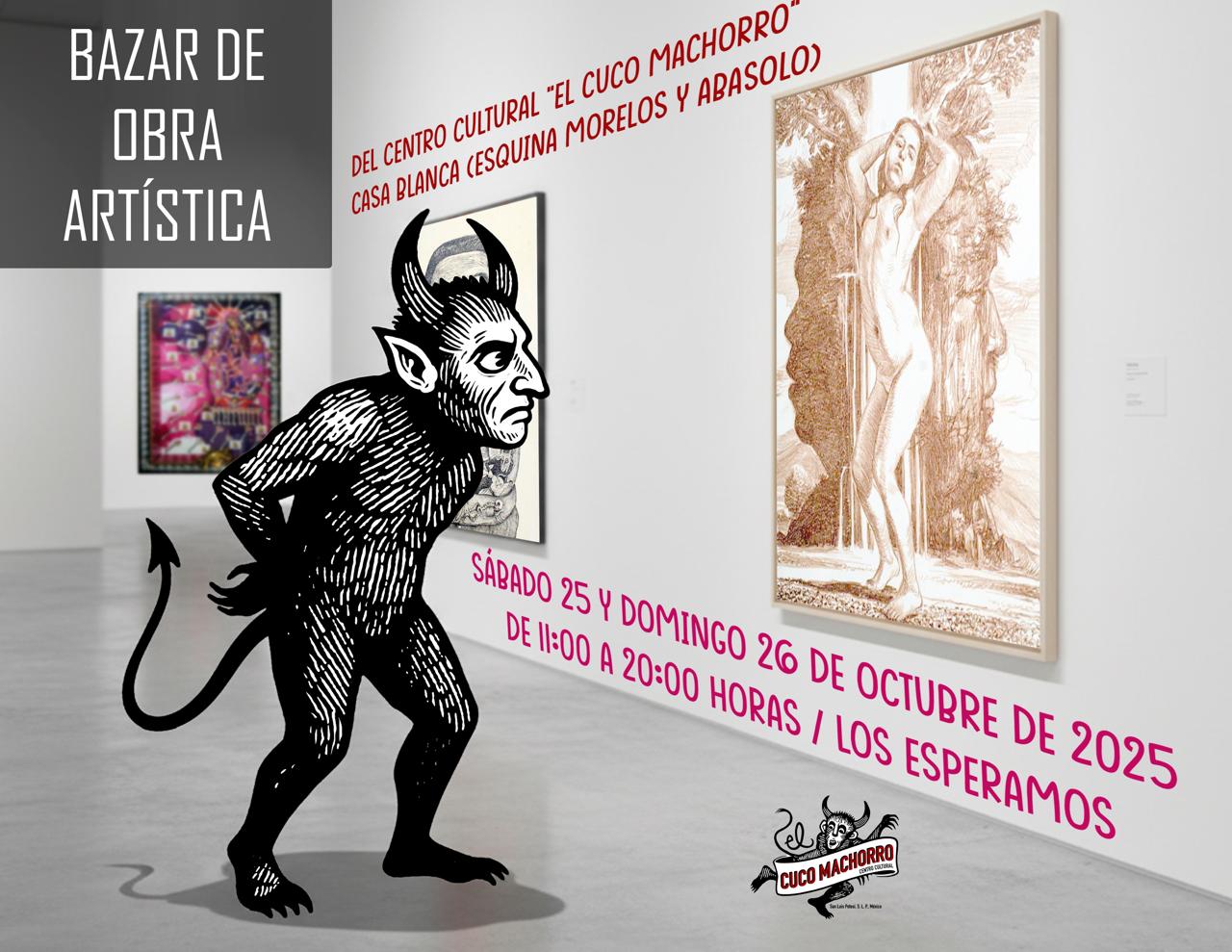 El bazar de obra artística se efectuará este sábado 25 y domingo 26 de octubre, de once de la mañana a ocho de la noche, en una casona de la esquina de Morelos con Abasolo, en el centro de la ciudad.