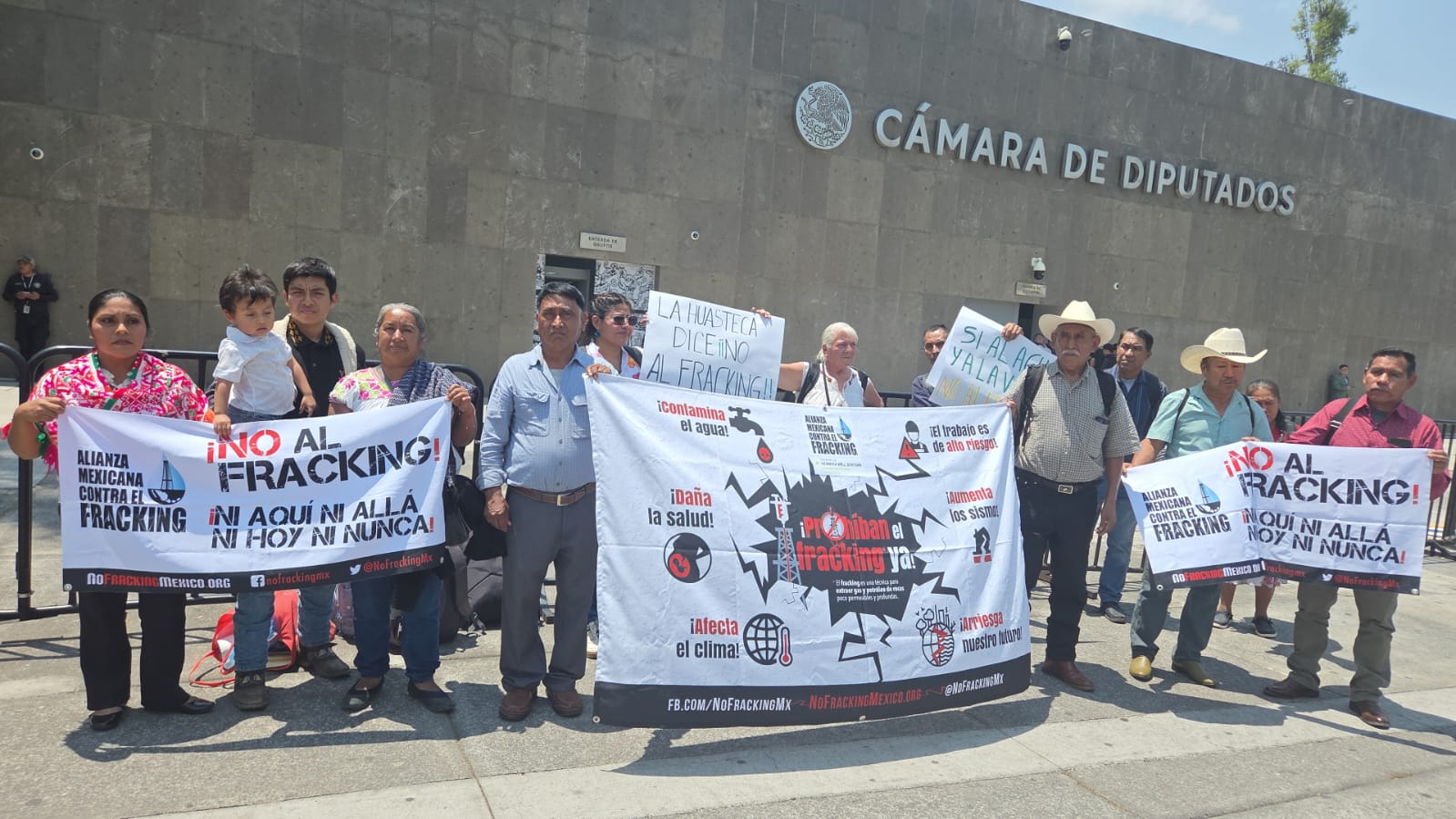 En rueda de prensa afuera del recinto legislativo de San Lázaro, las comunidades enfatizaron que no existe el fracking sustentable, pues esta técnica de explotación de yacimientos de hidrocarburos es altamente riesgosa y dañina para la salud y el medio ambiente.
