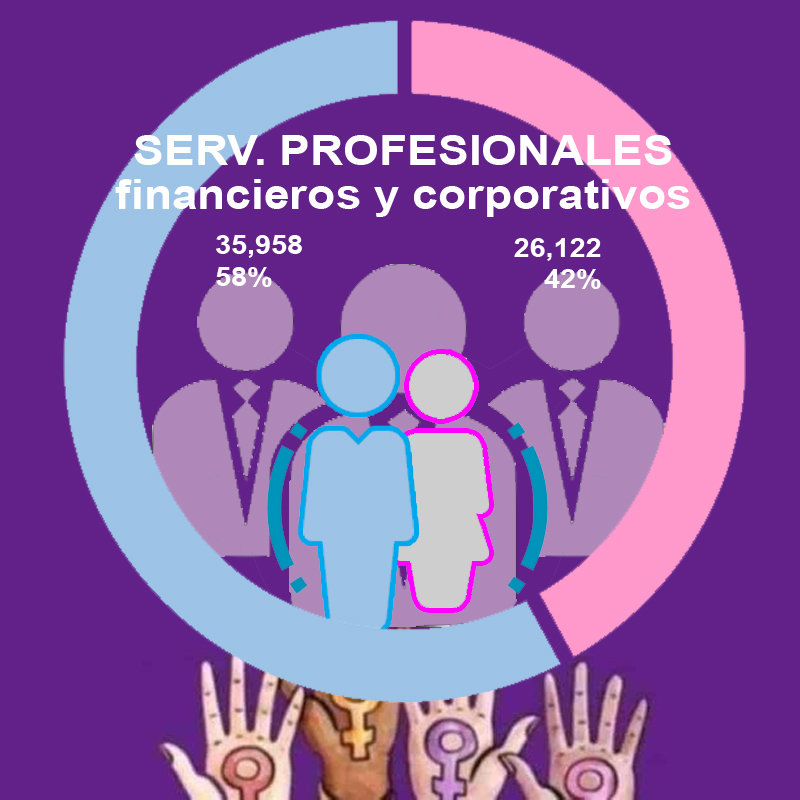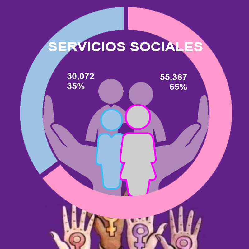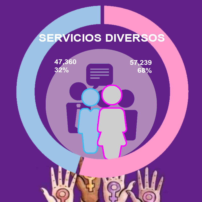 En el comercio las mujeres representan el 57 por ciento de las personas laborando en dicho sector; dentro de restaurantes y servicios de alojamiento son en total 66 mil 687, el 71 por ciento. En servicios sociales representan el 65 por ciento y en servicios diversos el 68 por ciento.