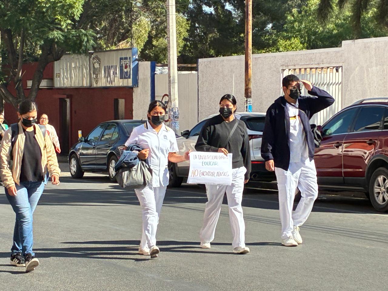 A su lado, una alumna foránea sostenía una pancarta que decía: “Primera generación universitaria, última generación silenciada”.
