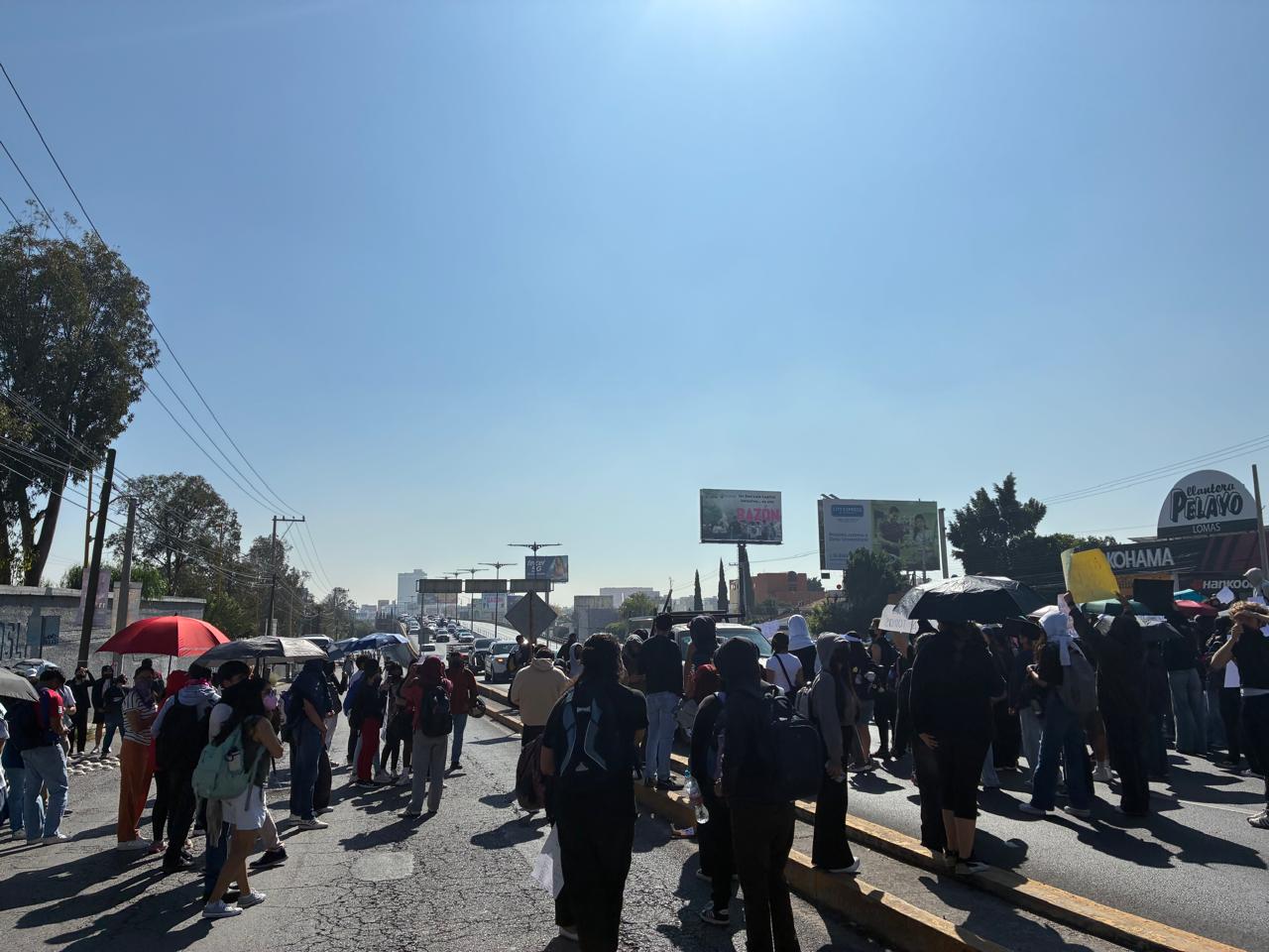 A las 10:00 de la mañana, el contingente bloqueó el puente vehicular de Salvador Nava, a la altura de la Garita de Jalisco. El sol comenzaba a caer vertical sobre las cabezas cubiertas; en ese punto, varios jóvenes tomaron el megáfono.