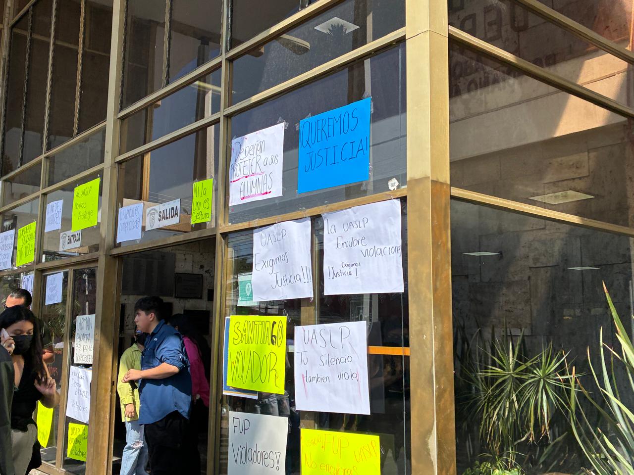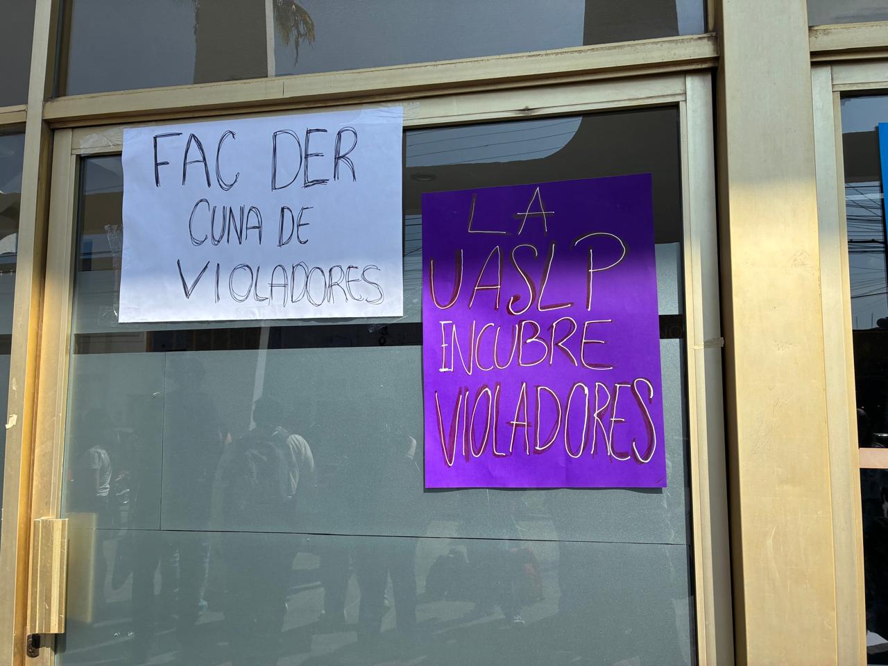 Estudiantes organizadas de la Facultad de Derecho de la Universidad Autónoma de San Luis Potosí (UASLP) tomaron las instalaciones del plantel, las calles de la capital potosina y finalmente las oficinas del edificio central de la Universidad, en protesta por el caso de abuso sexual cometido contra una compañera de dicha carrera.