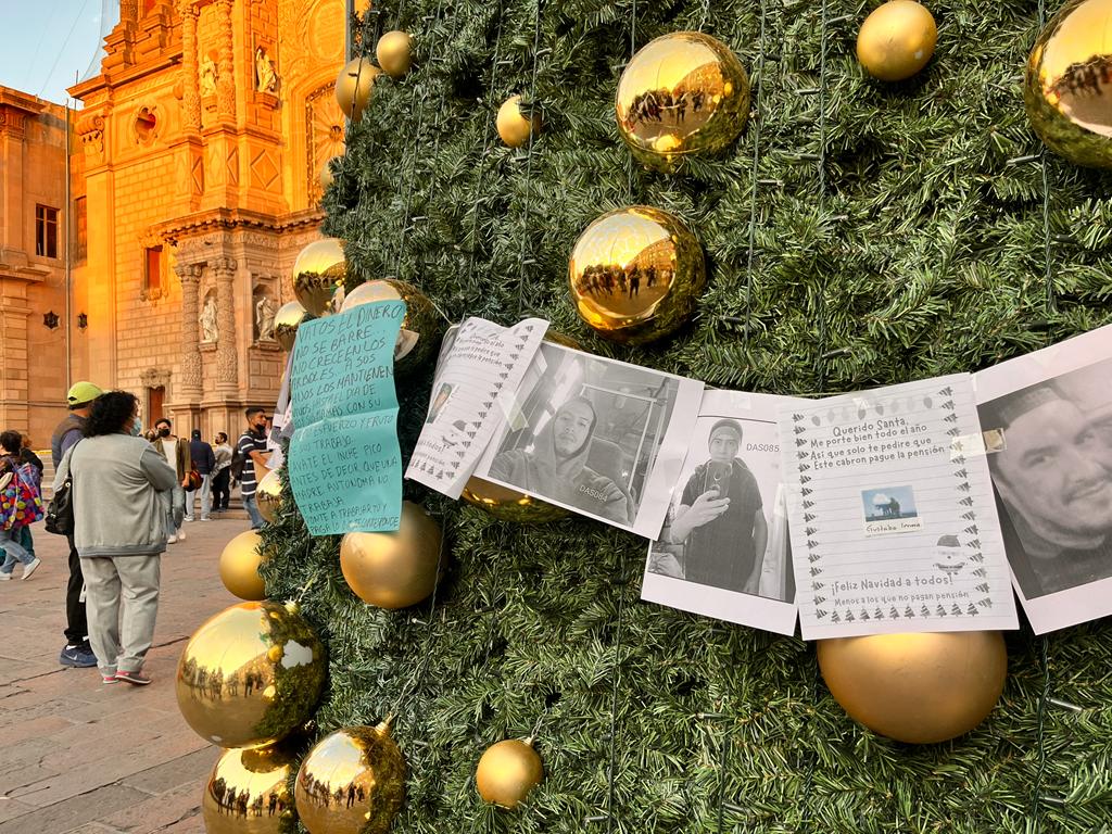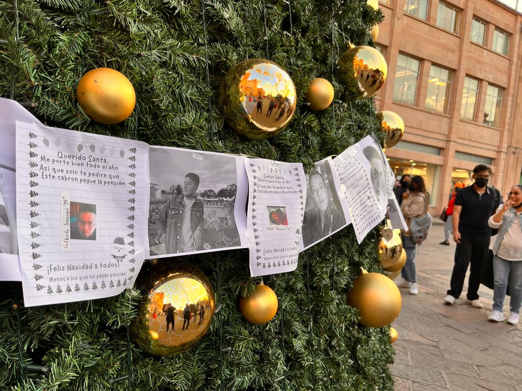 Esto tras colocar un tendedero de denuncia de padres deudores en el árbol navideño del Ayuntamiento de la capital.