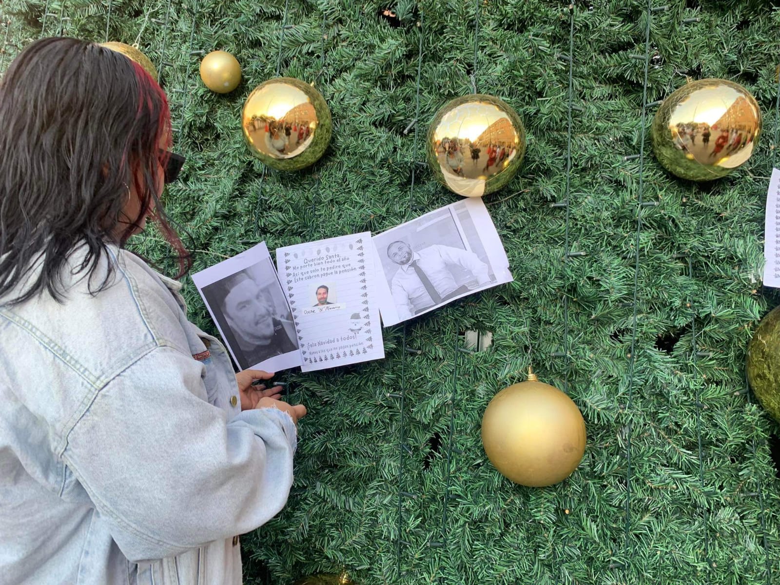 Luego de unos minutos, los elementos policiales se retiraron ante la negativa del frente de quitar las denuncias anónimas pegadas en el pino navideño.