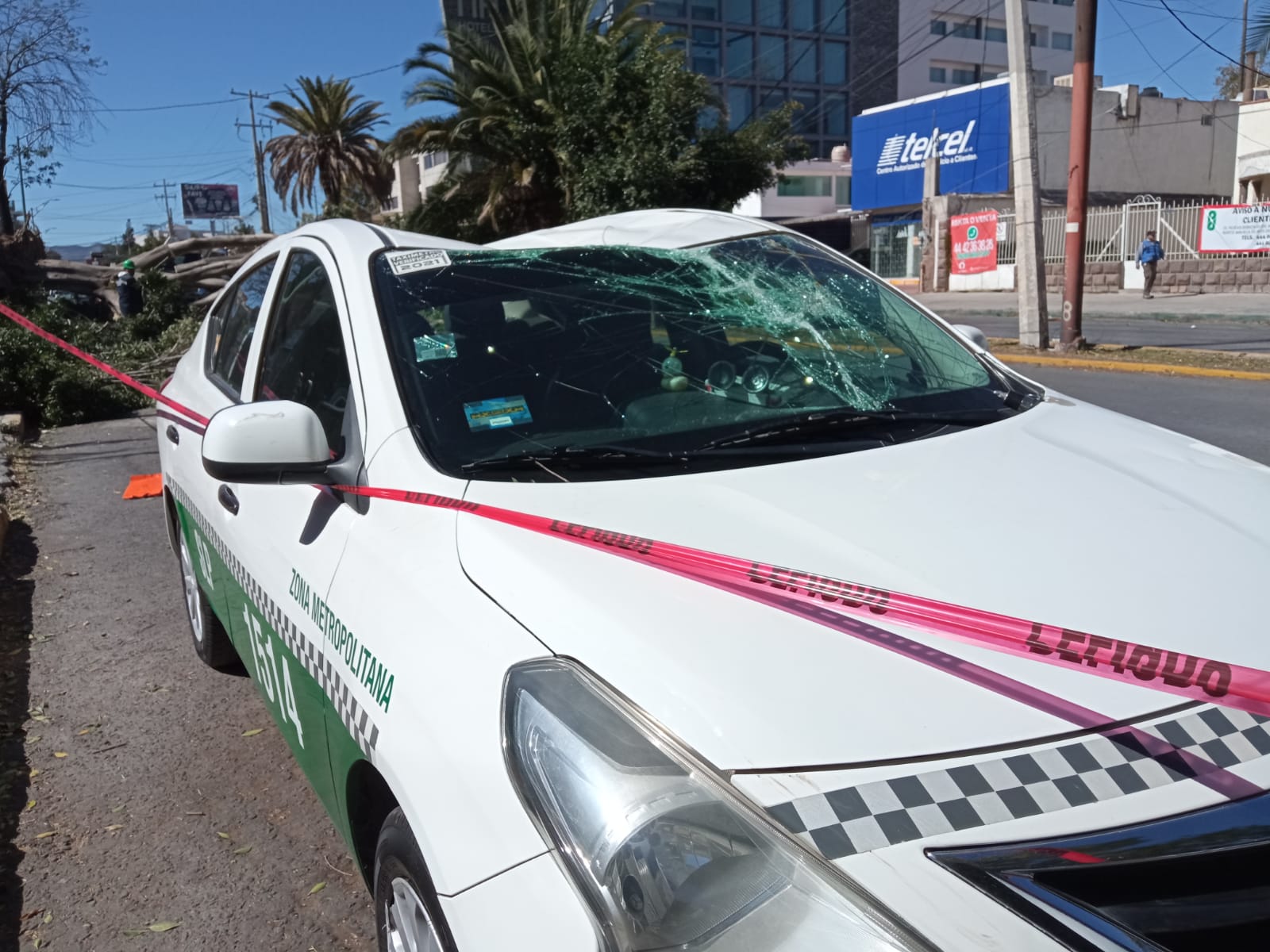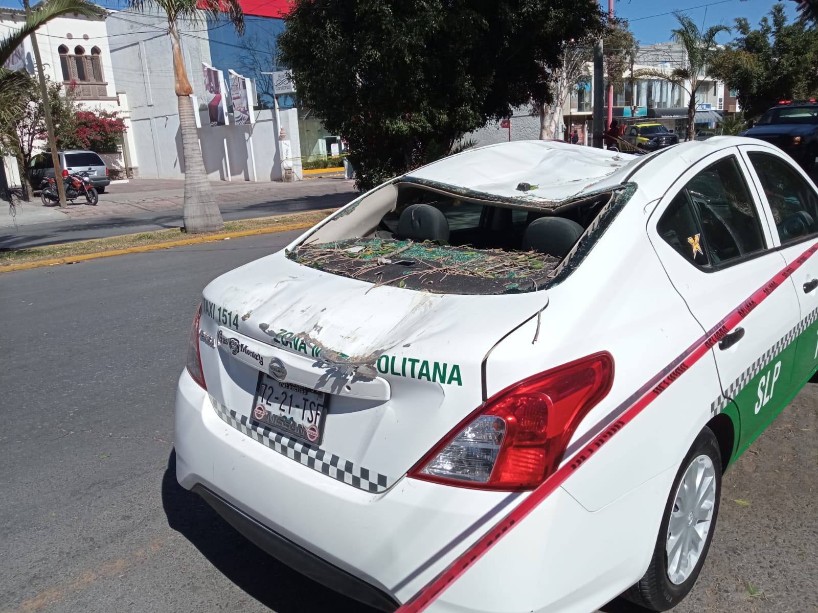 Entre los daños materiales que se pudieron reportar, se registró la fractura de un poste de luz y el aplastamiento de un taxi metropolitano.