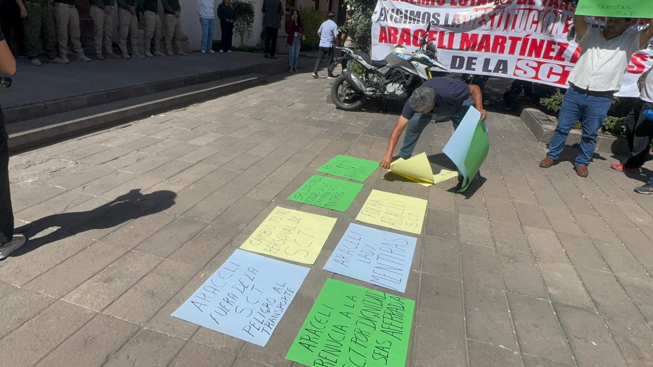 Otros manifestantes exigieron la destitución de la secretaria Araceli Martínez Acosta, a quien acusaron de “mentir sobre la situación del transporte”, además de que “solo presume la Red Metro” y “ha olvidado al gremio”.